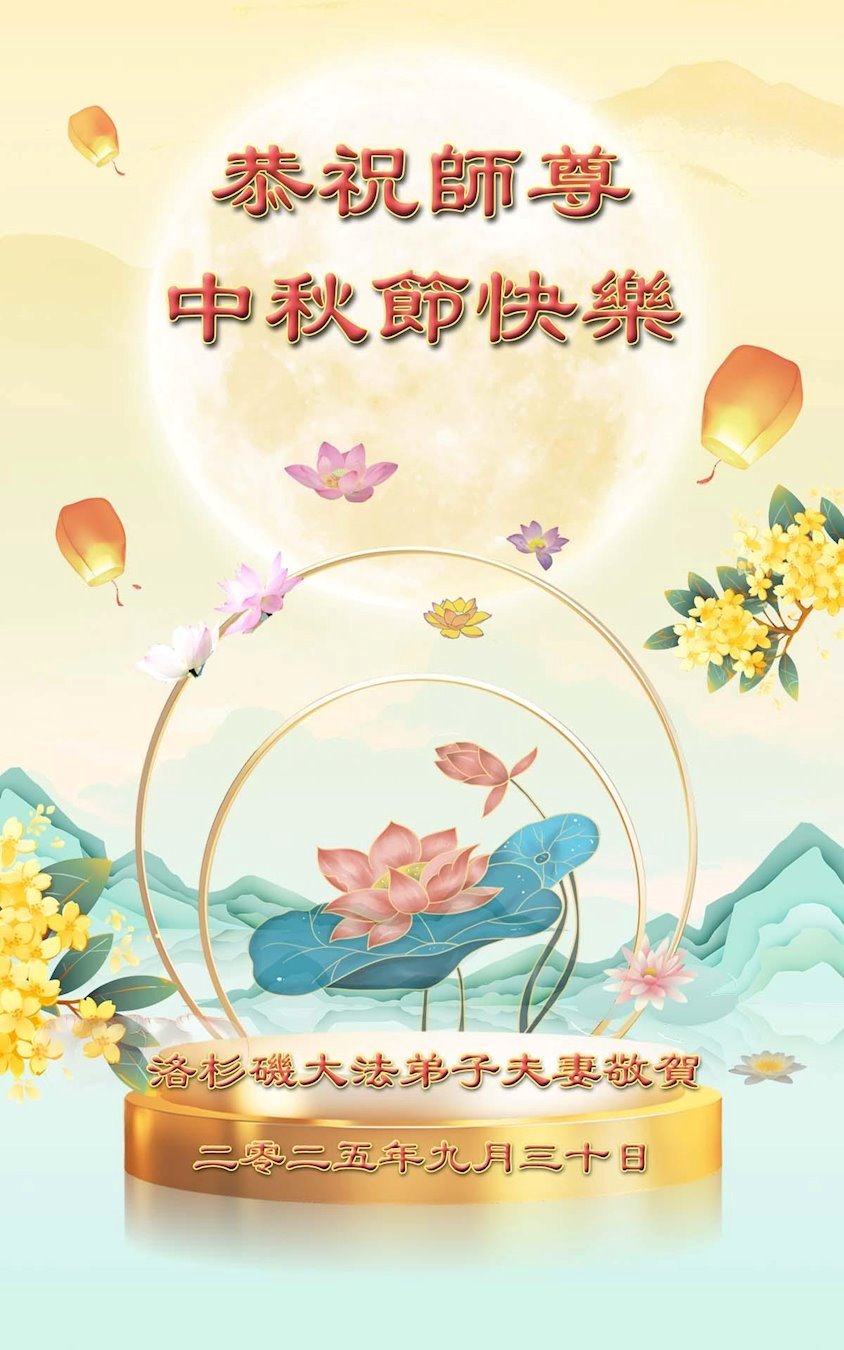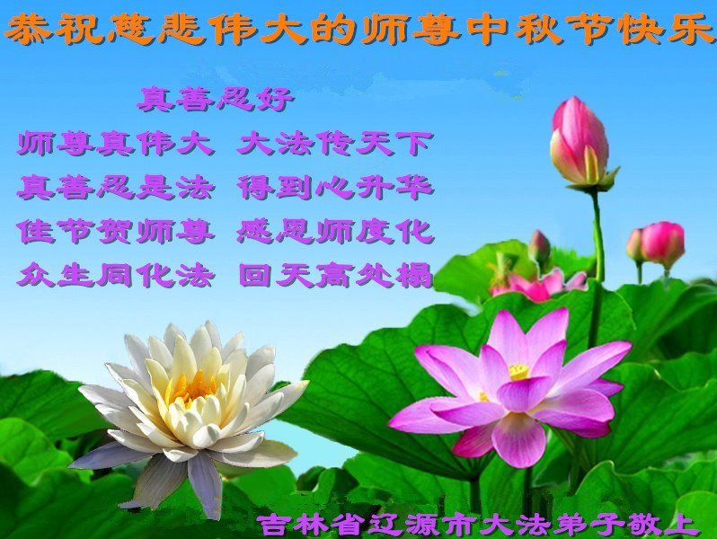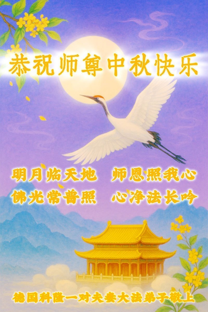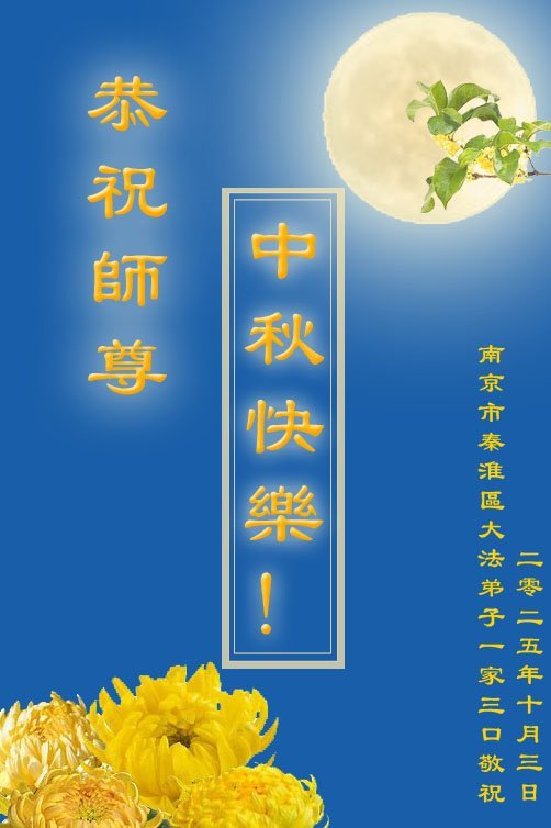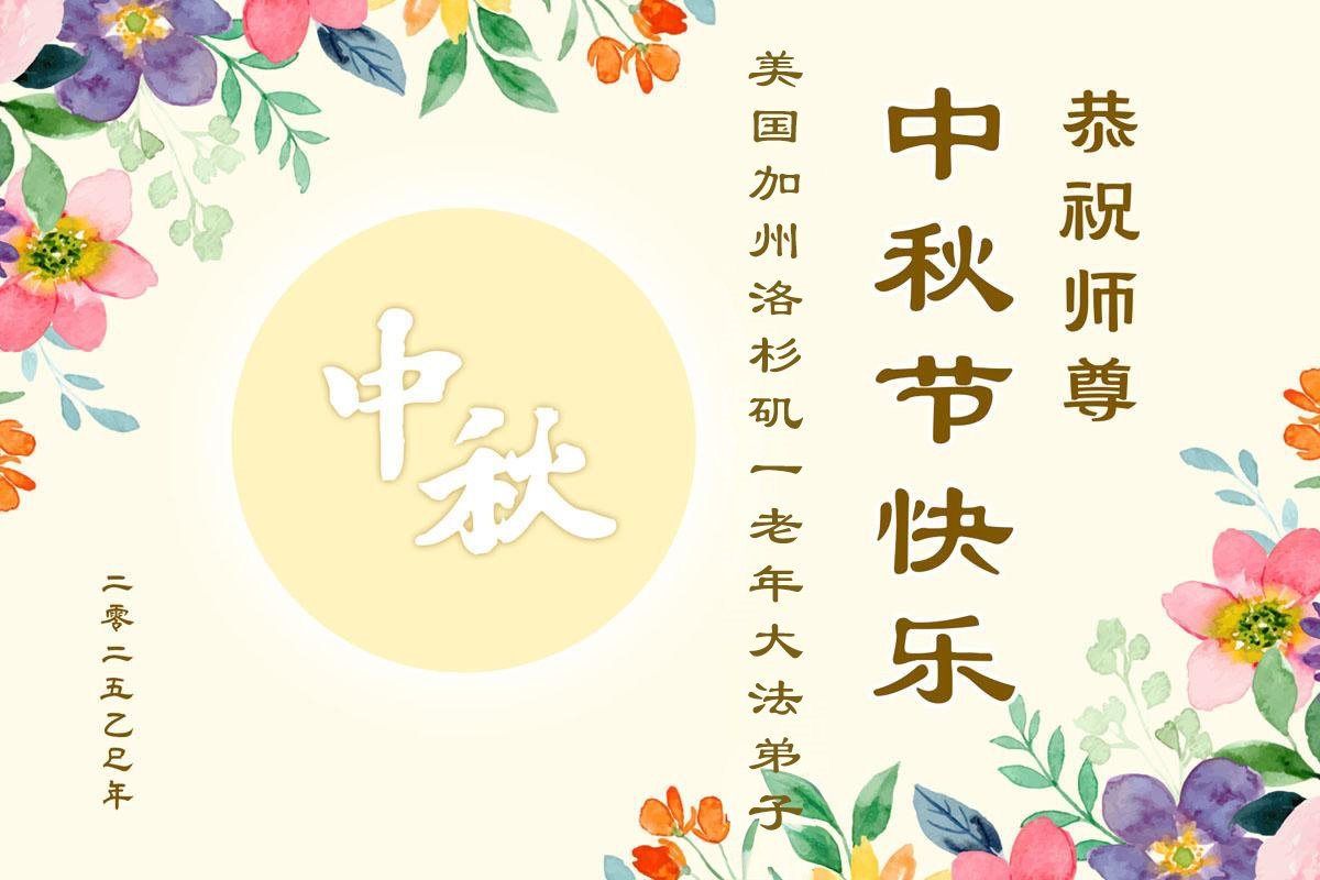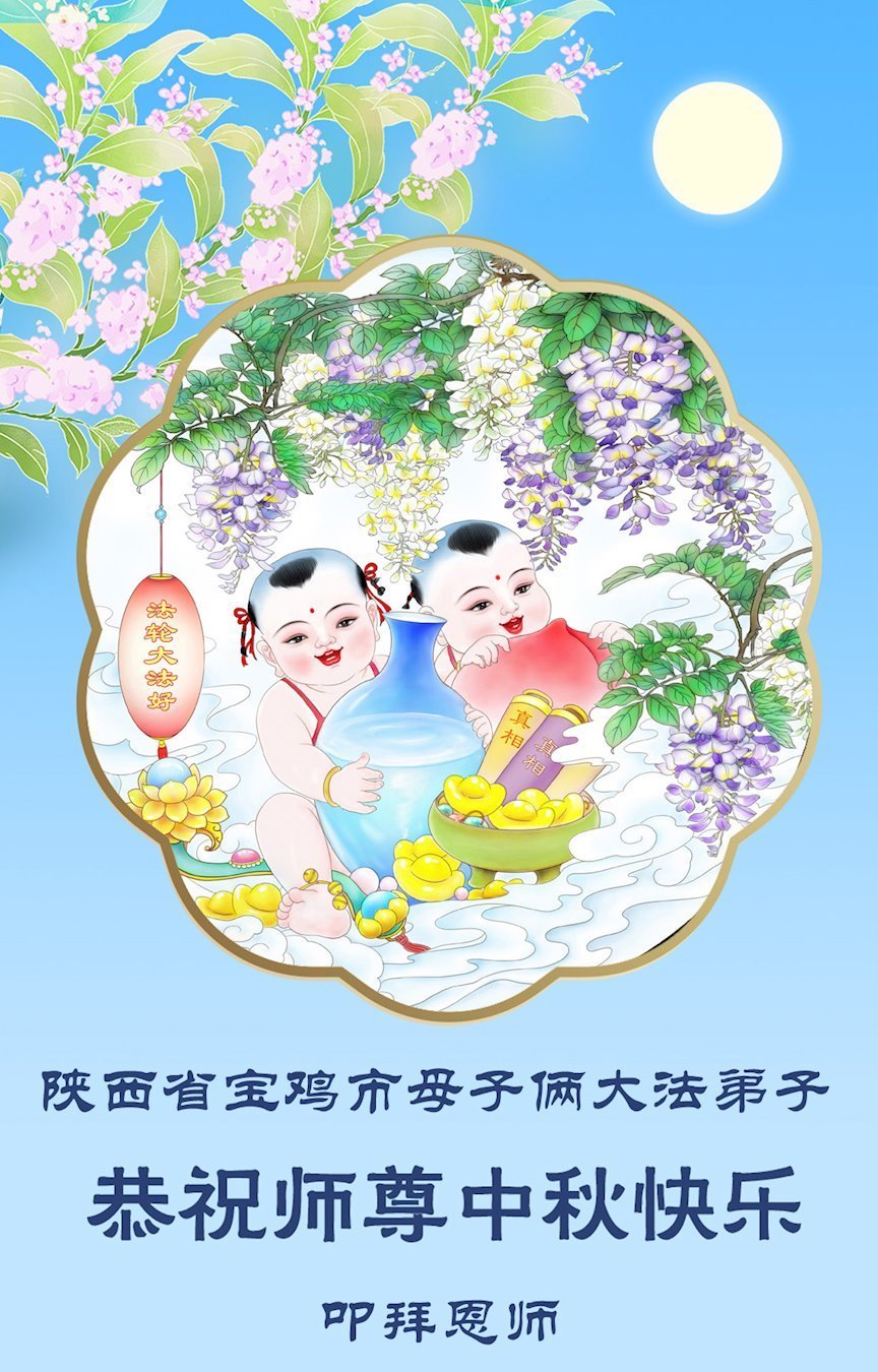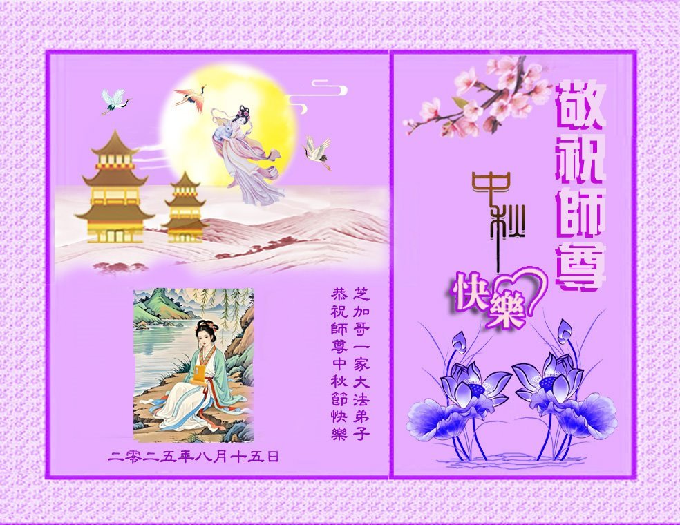 Dear and benevolent Master, I congratulate you on this Mid-Autumn Festival and wish that all Dafa disciples, including myself, remain true to our vows in our cultivation and in saving sentient beings, so that together with you, we may return to our true home。