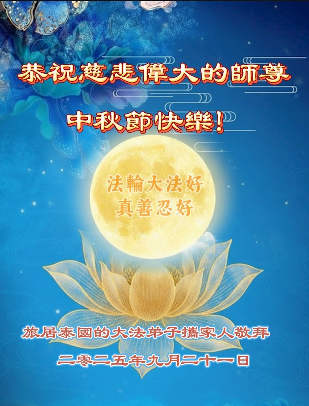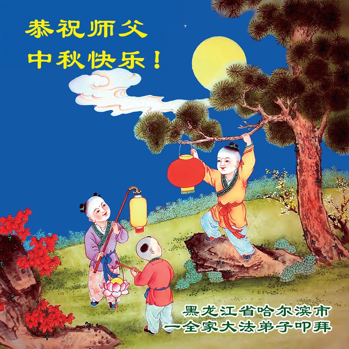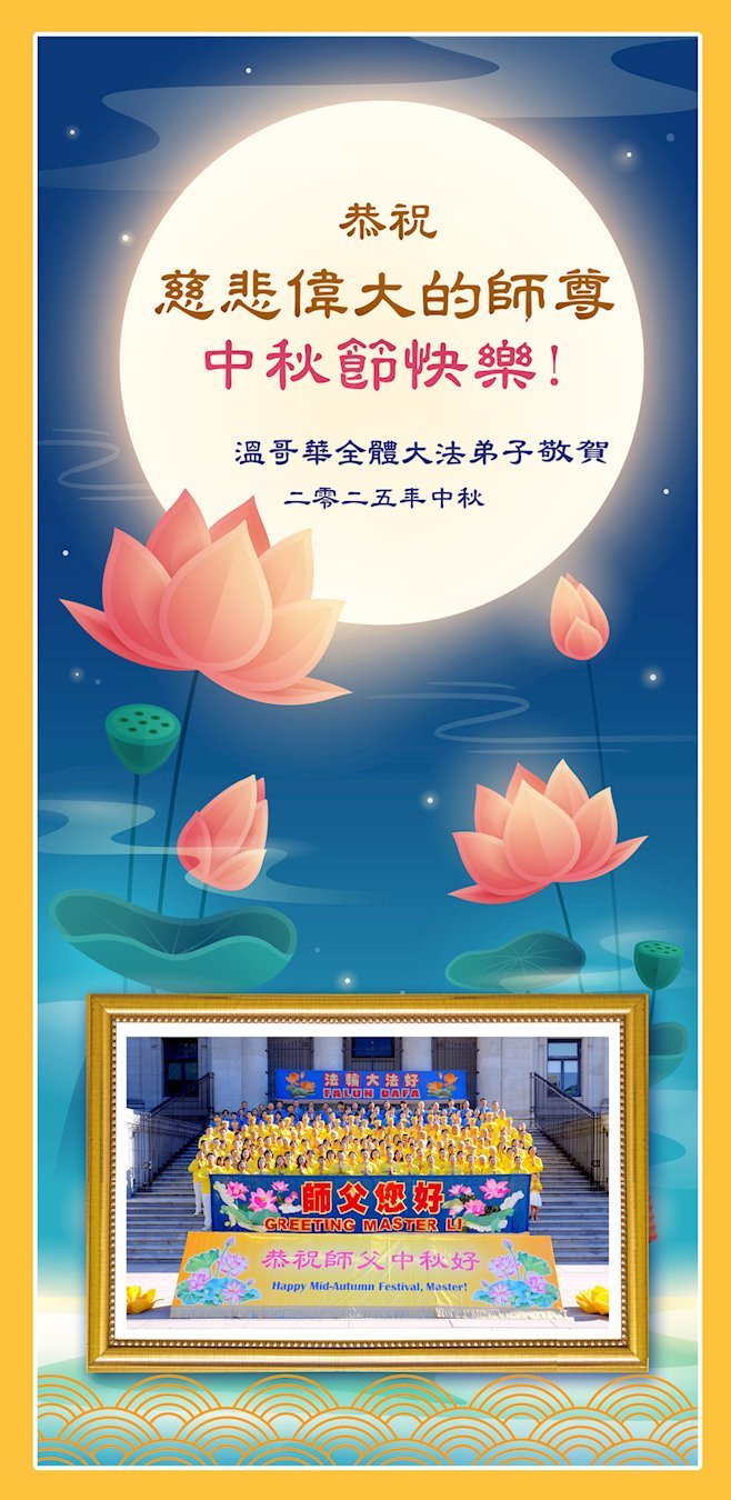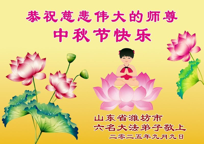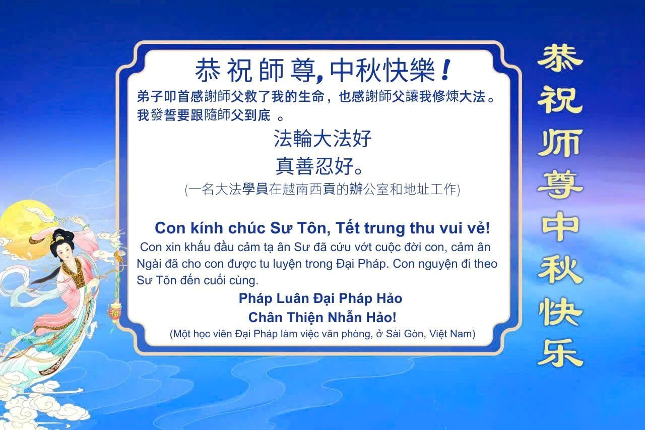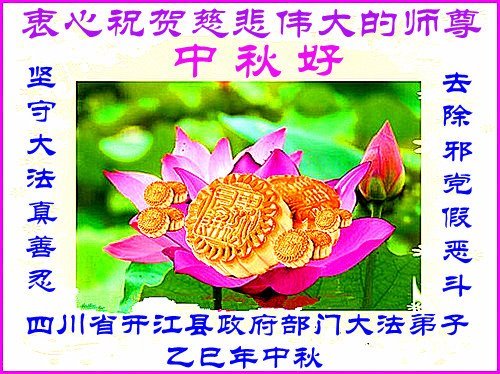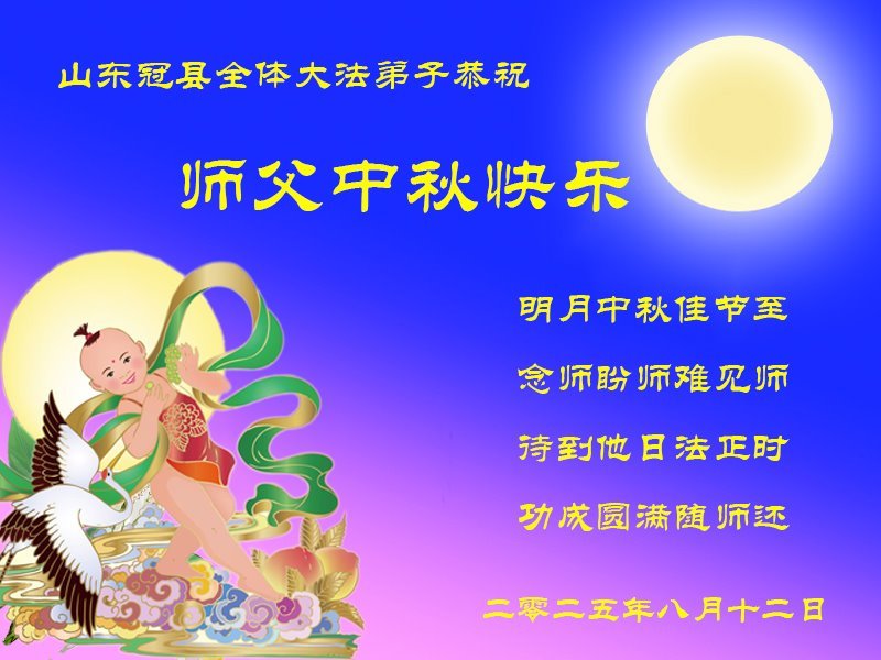Dear and benevolent Master, I congratulate you on this Mid-Autumn Festival and wish that all Dafa disciples, including myself, remain true to our vows in our cultivation and in saving sentient beings, so that together with you, we may return to our true home。