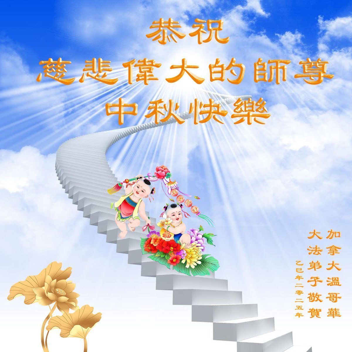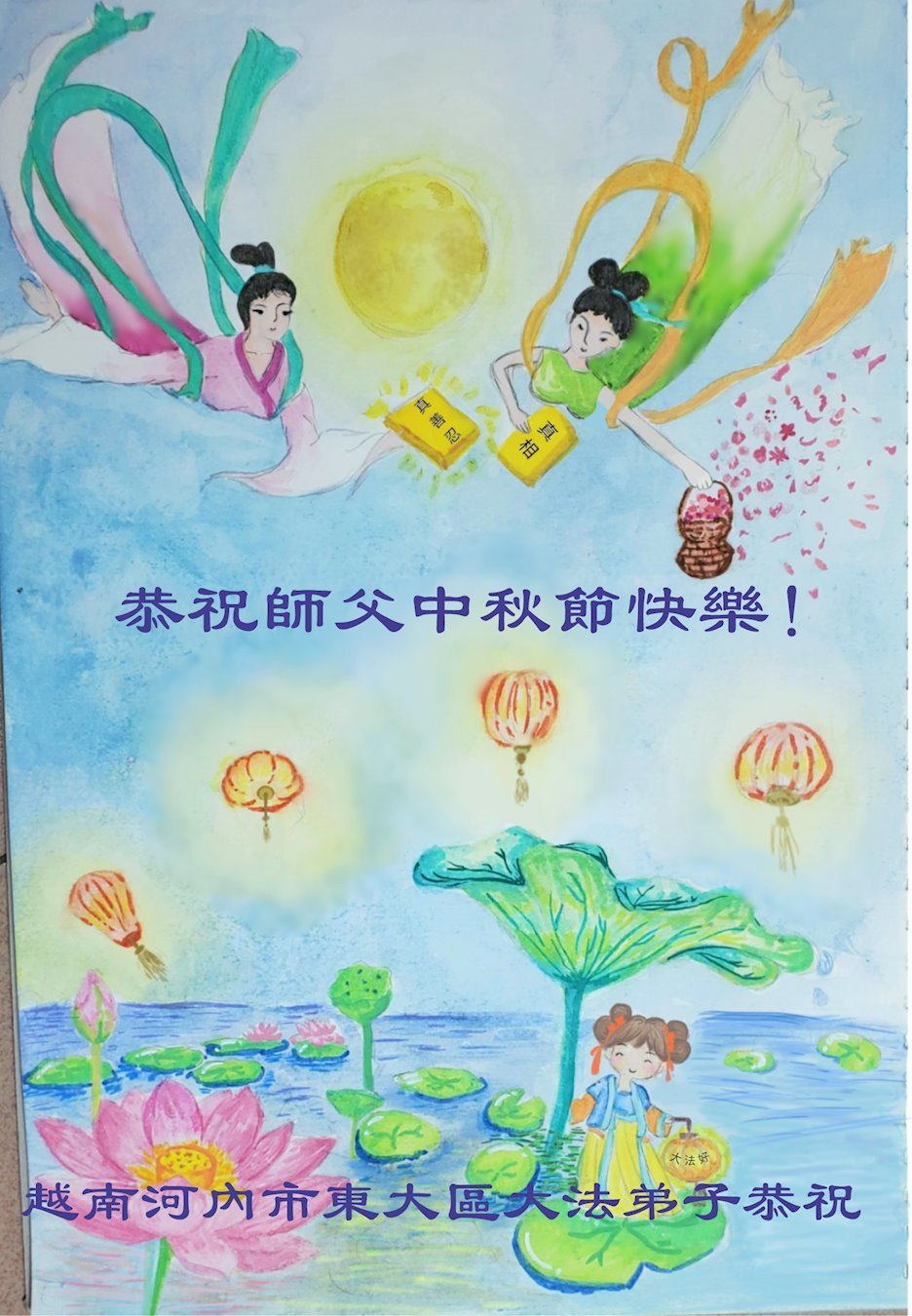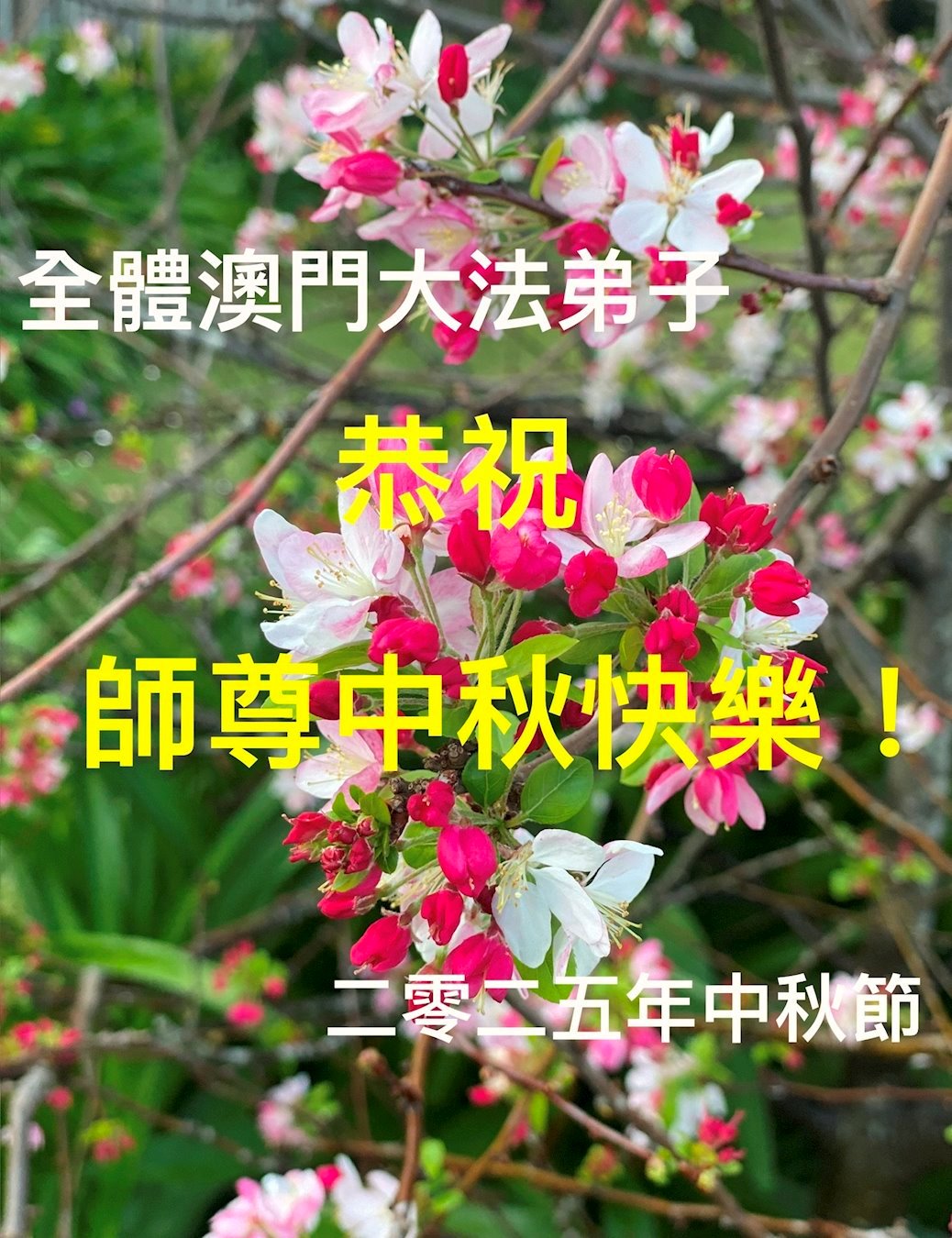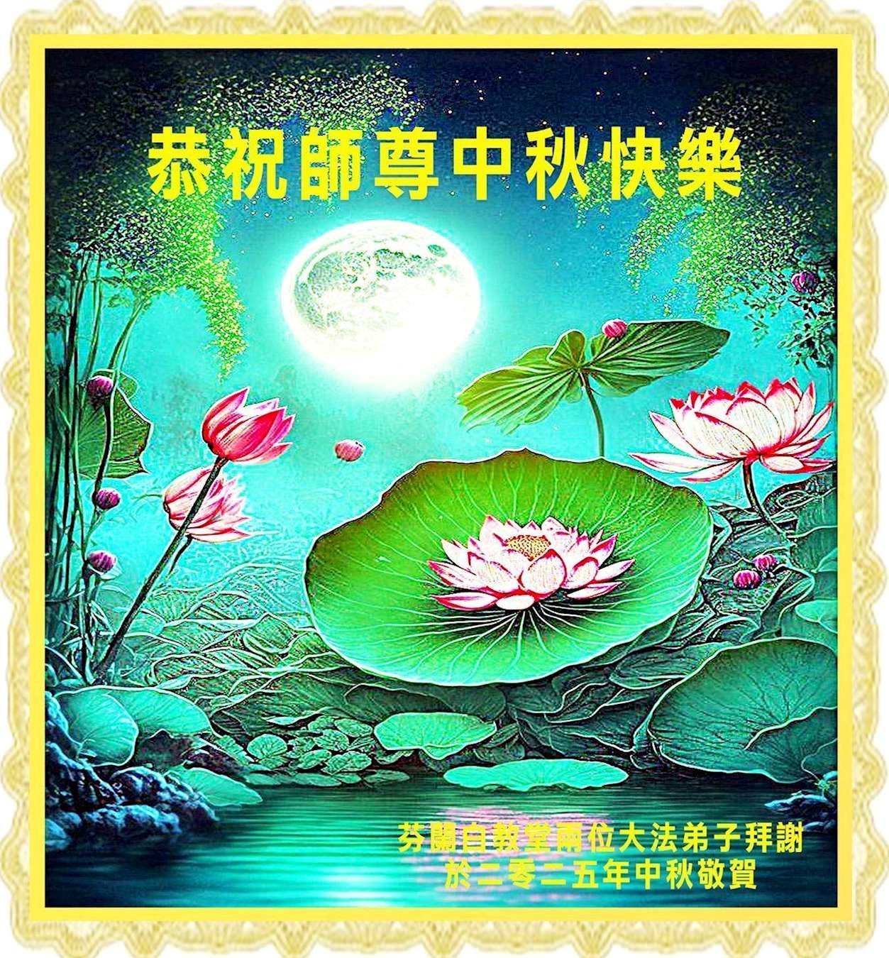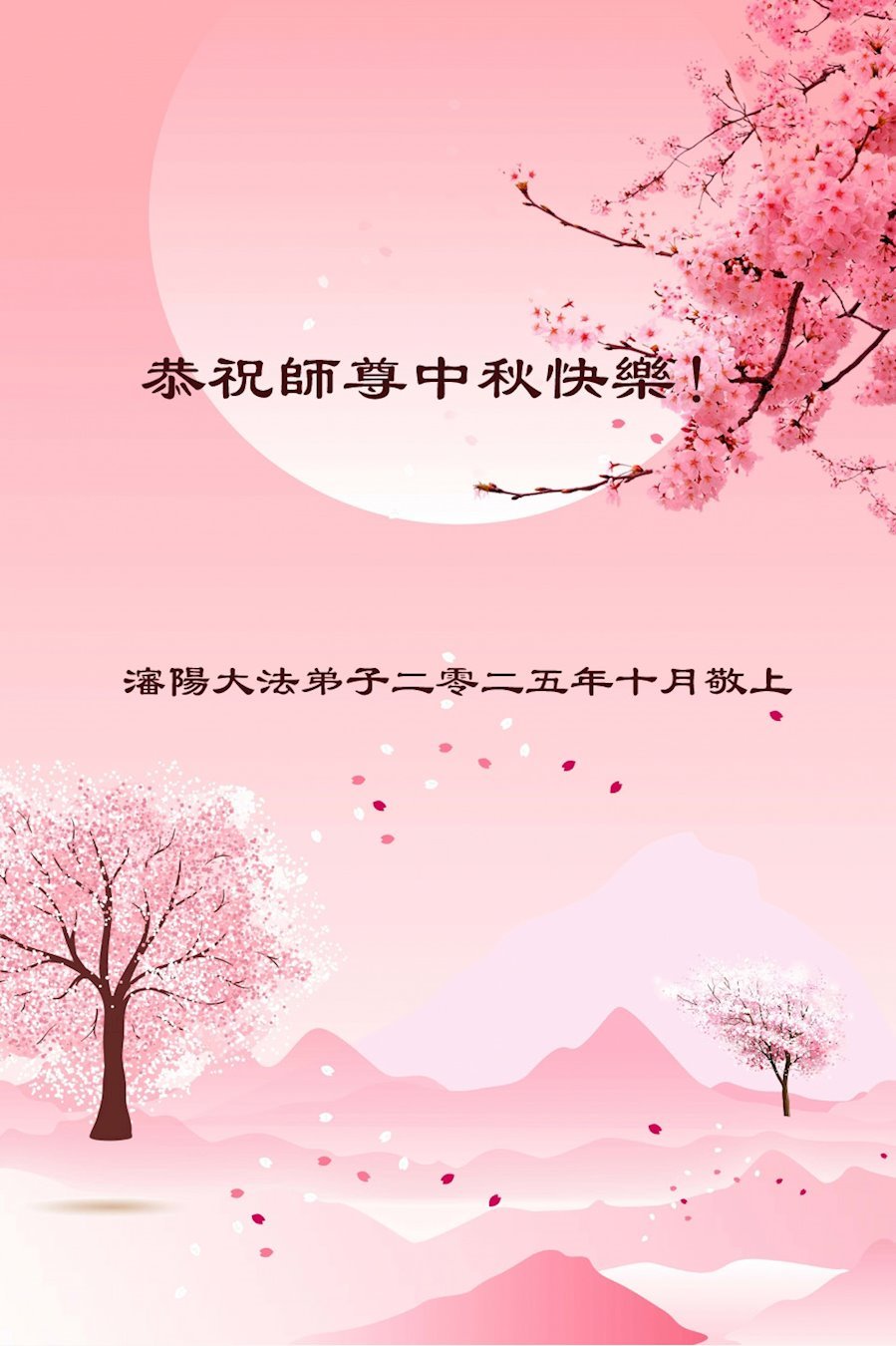 Dear and benevolent Master, I congratulate you on this Mid-Autumn Festival and wish that all Dafa disciples, including myself, remain true to our vows in our cultivation and in saving sentient beings, so that together with you, we may return to our true home。