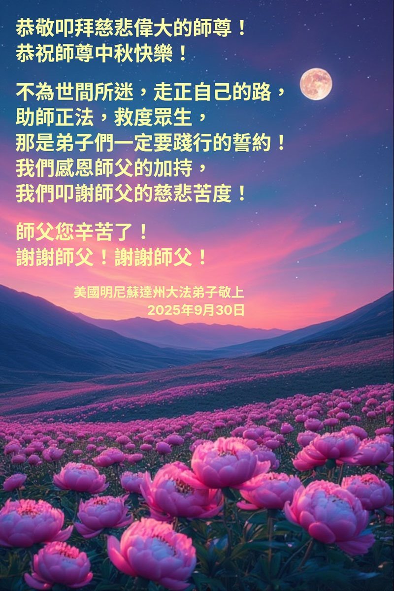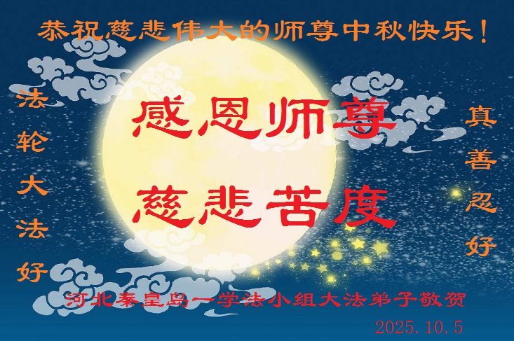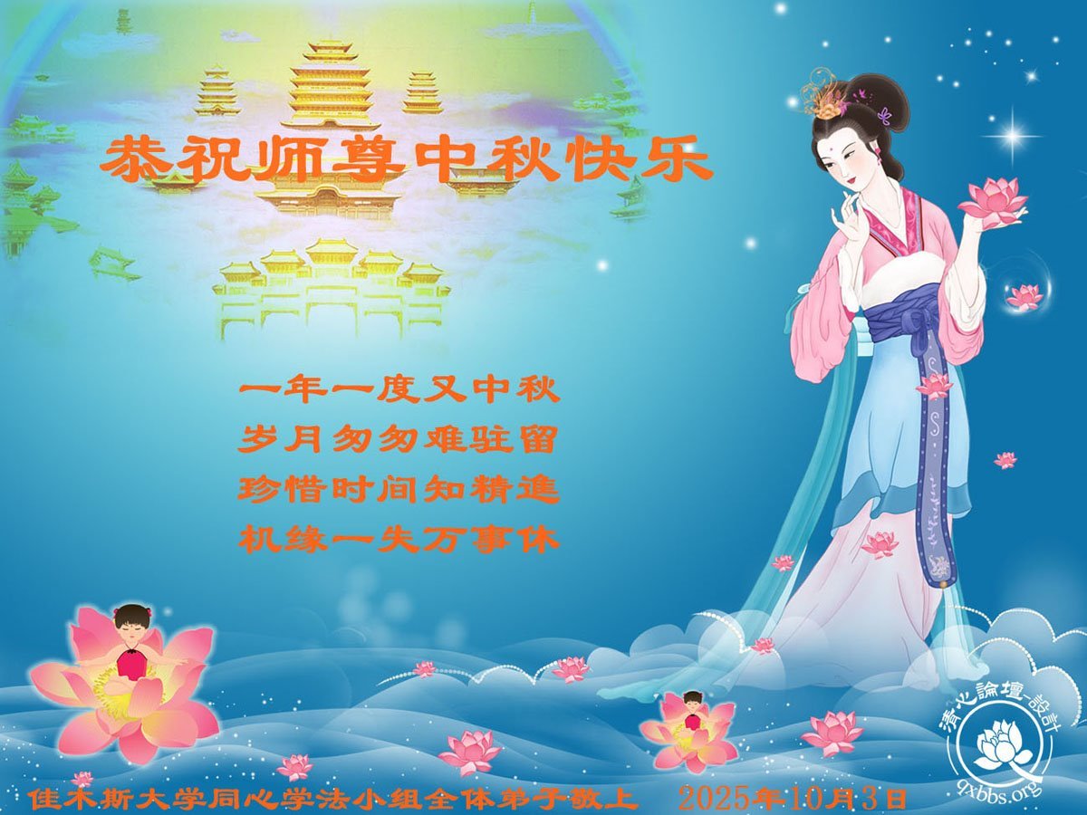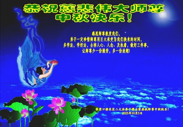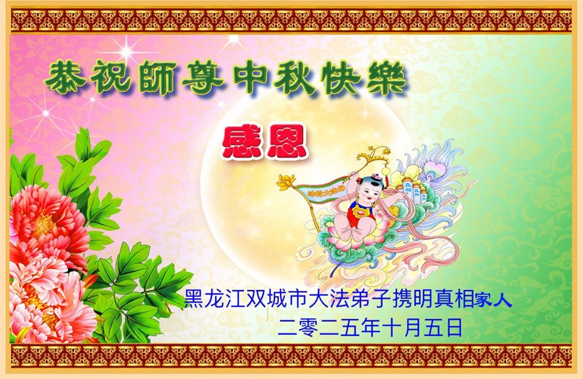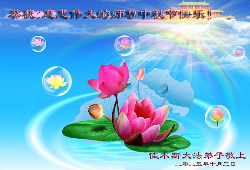 【明慧网二零二五年十月六日】在这合家团圆的中秋佳节,亿万大法弟子感恩师尊救度!大法弟子们时时感受到师尊的守护和指引,坚定的走在大法修炼之路上,不负师尊的嘱托,不负众生的期盼,走向美好的家园。