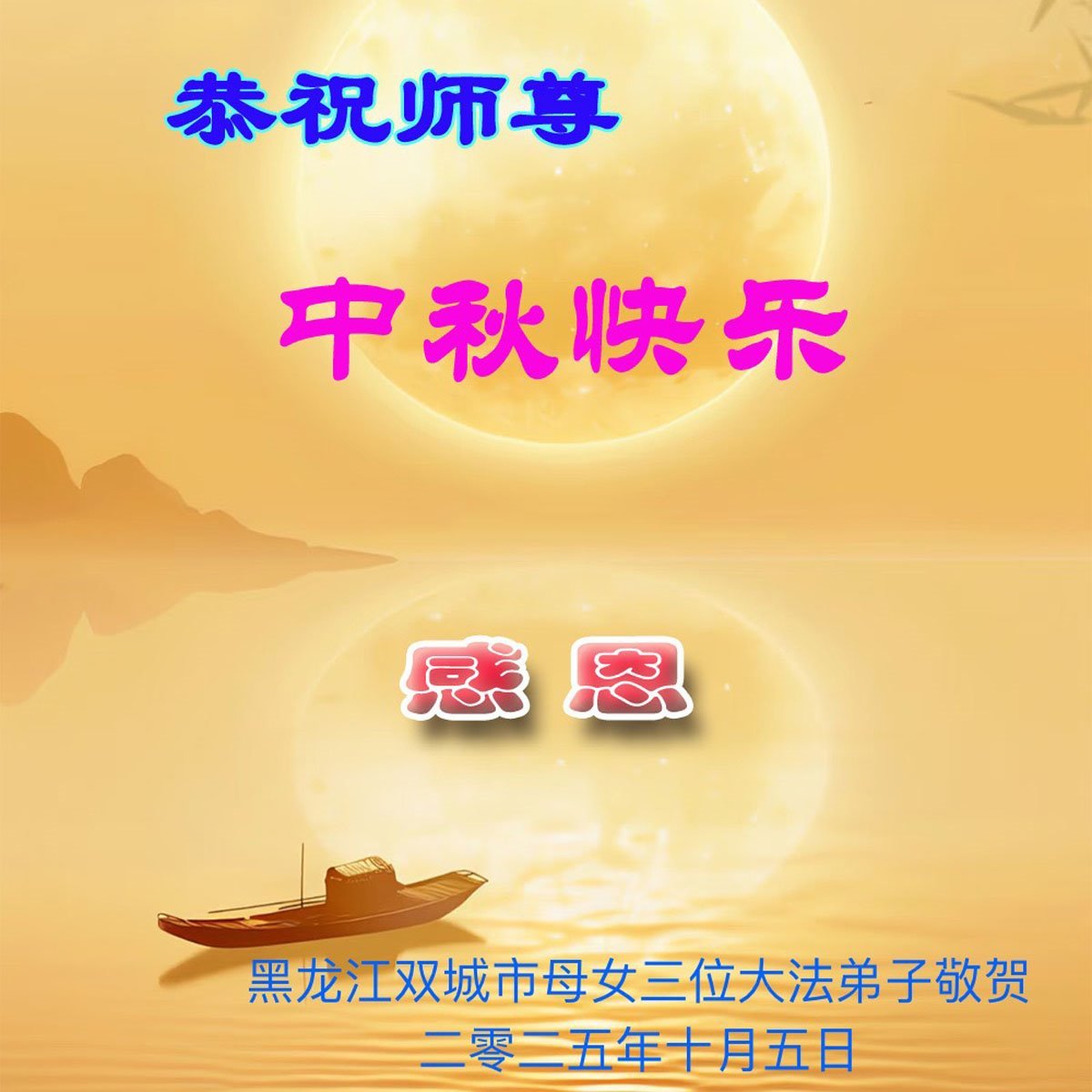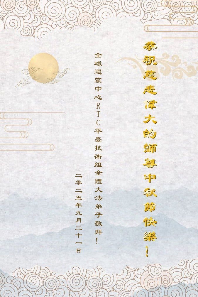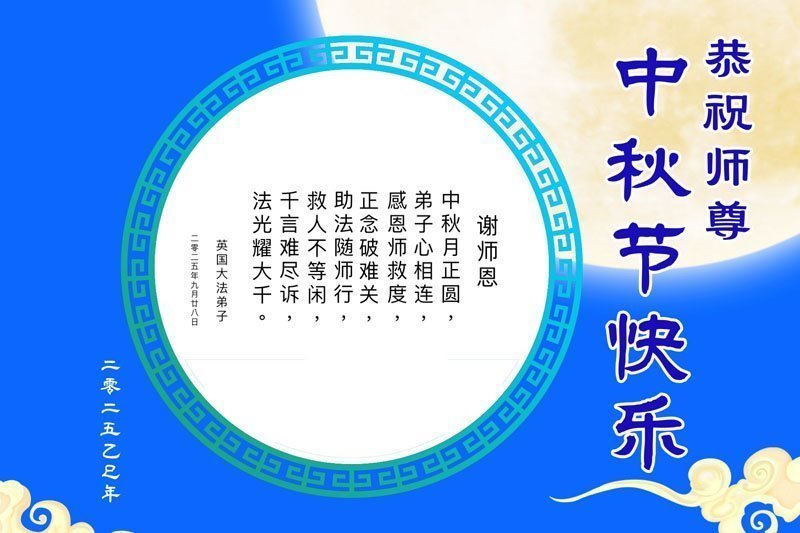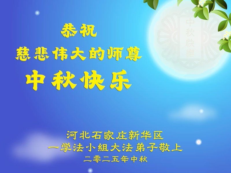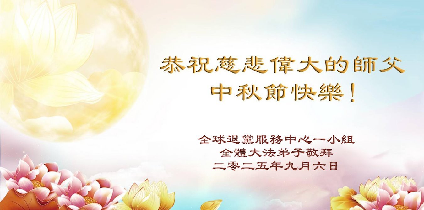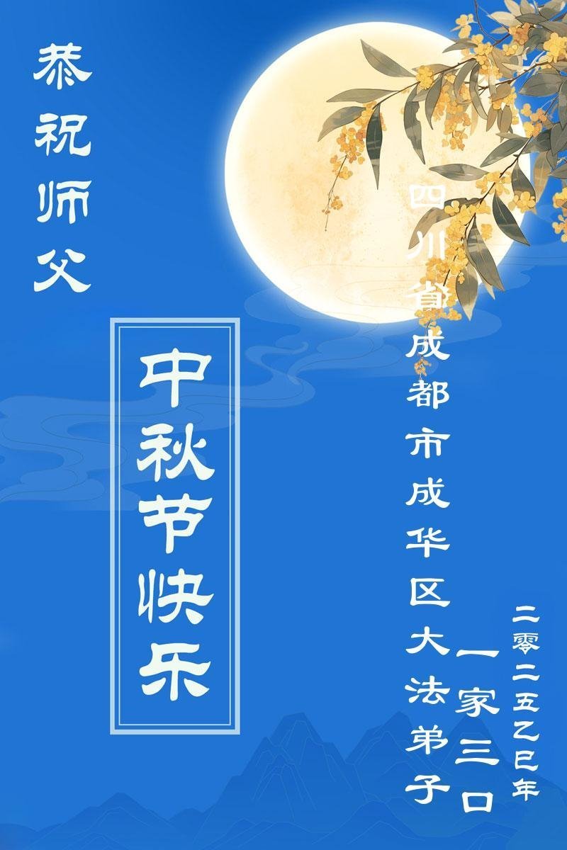 【明慧网二零二五年十月六日】在这合家团圆的中秋佳节,亿万大法弟子感恩师尊救度!大法弟子们时时感受到师尊的守护和指引,坚定的走在大法修炼之路上,不负师尊的嘱托,不负众生的期盼,走向美好的家园。