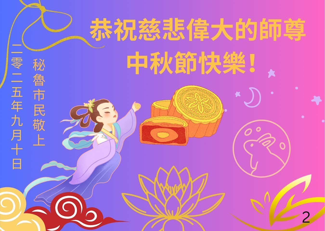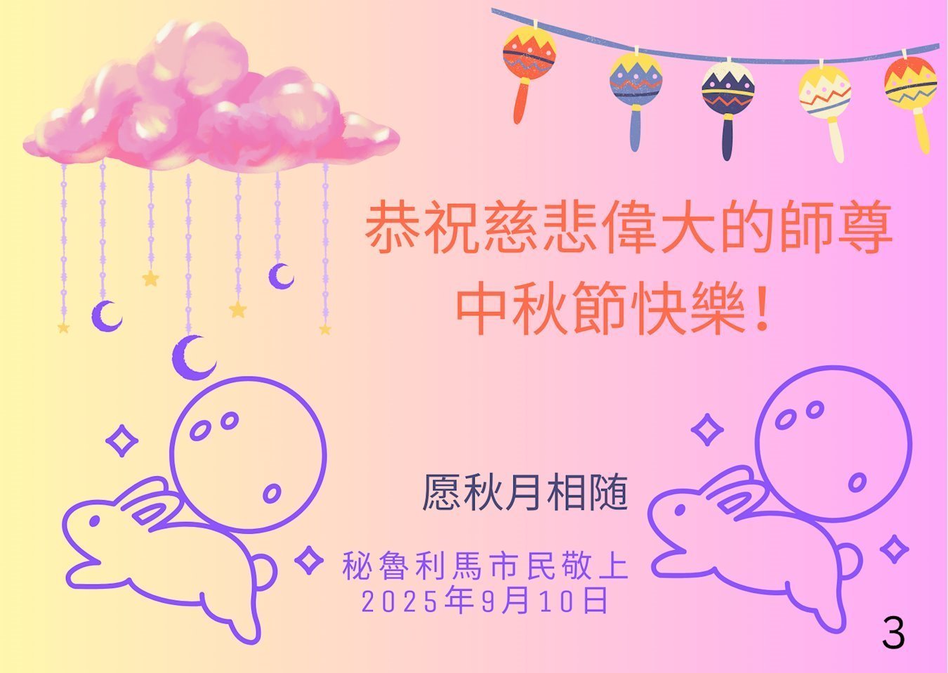 (译文)怀着最深切的敬意和感恩,祝师父中秋节快乐!