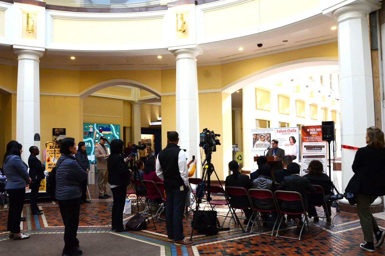 ![]() 图2:在宾州议会大厦举行的法轮大法真相日新闻发布会后,宾州参议员马斯特里亚诺接受媒体采访。他前一天提出一项决议,谴责中共迫害法轮功。 |