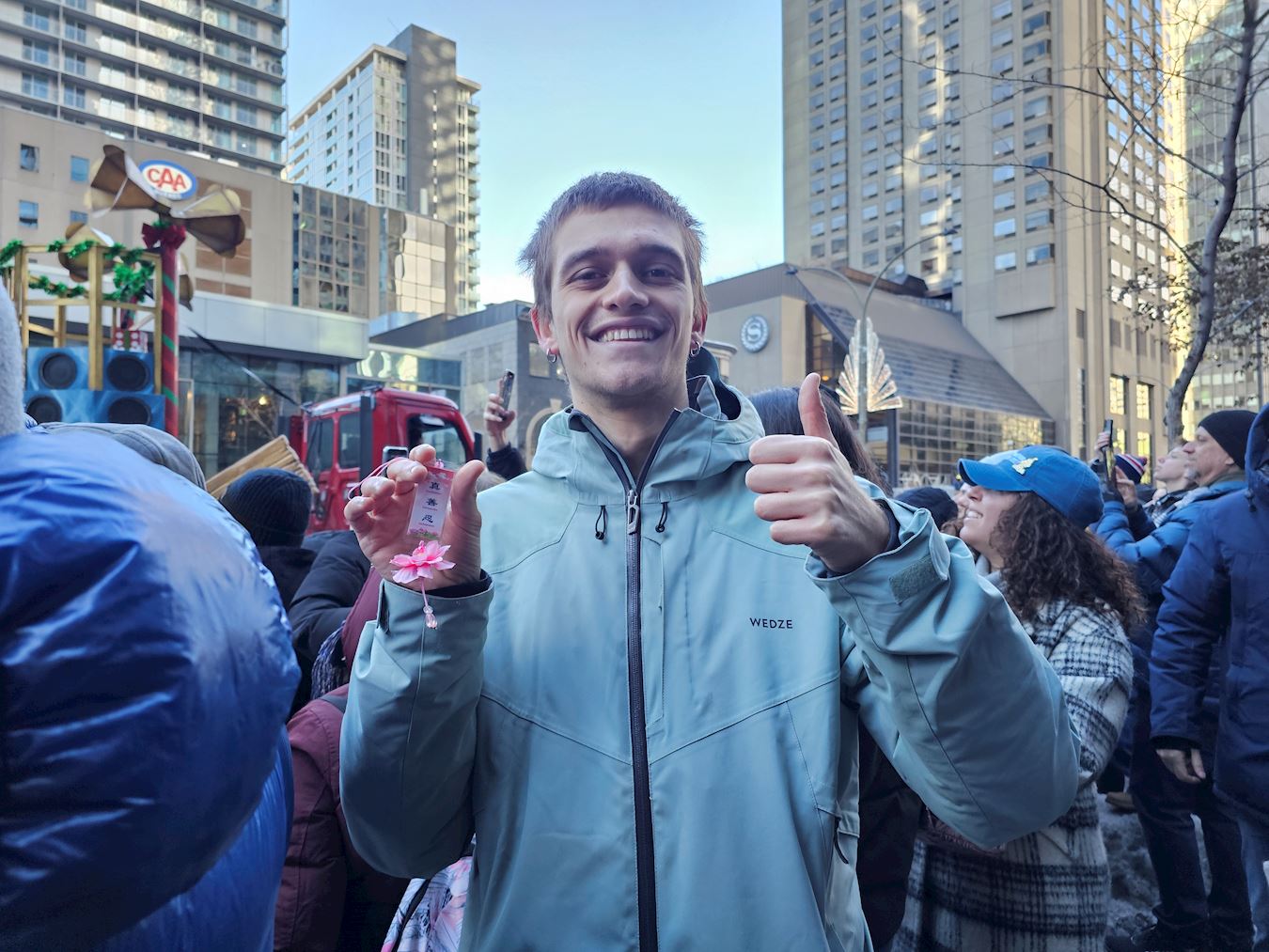 【明慧网二零二五年十一月二十四日】二零二五年十一月月二十二日,蒙特利尔迎来了一年中规模最盛大的庆祝活动——圣诞大游行。法轮大法天国乐团,以庞大阵容出场,向魁北克民众传递大法的美好,并送上节日的祝福,受到观众盛赞。