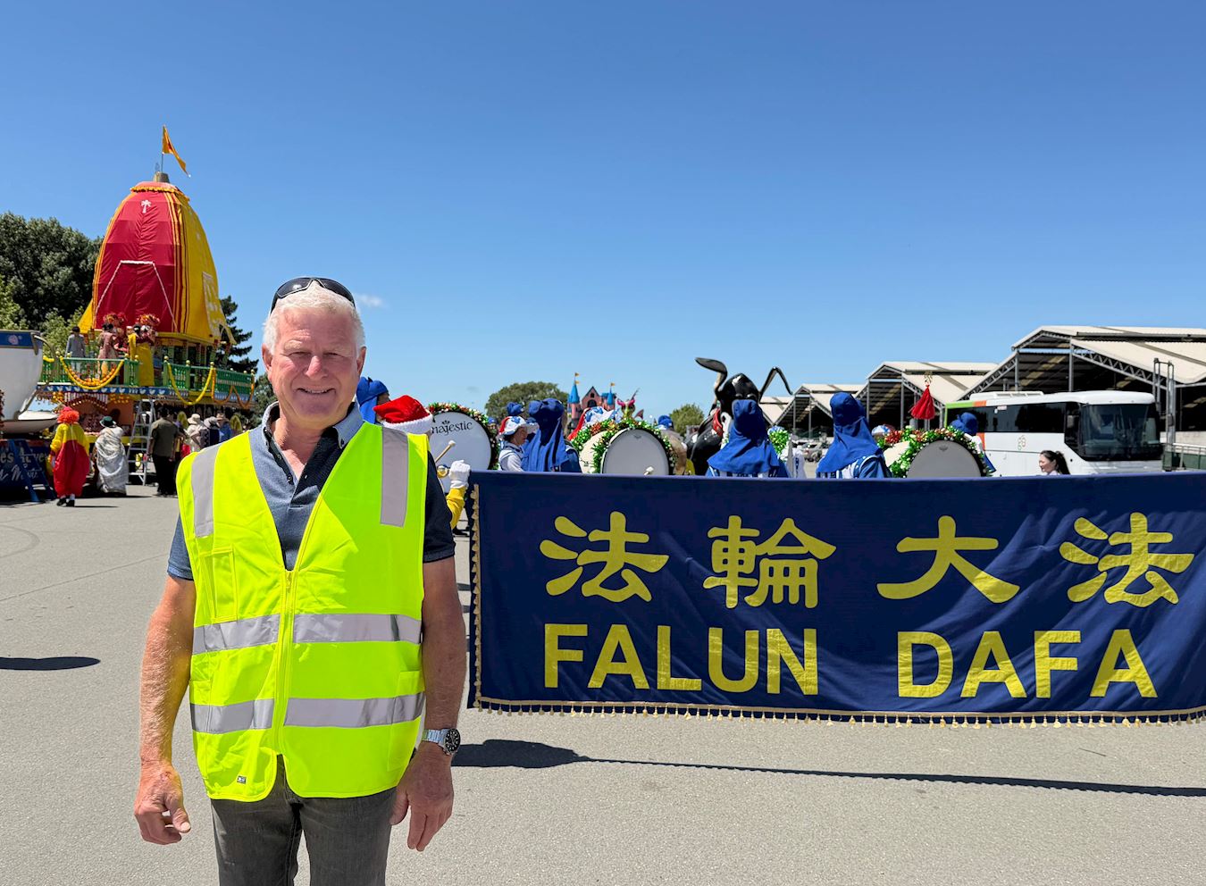 ![]() 图10:游行志愿者马克·斯凯夫(Mark Scaife)称赞法轮功队伍很漂亮。 |