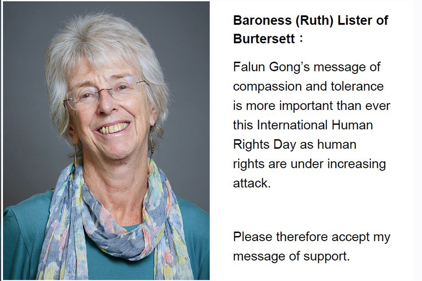 【明慧网二零二五年十二月十日】二零二五年十二月十日国际人权日前夕,数位英国政要致函,向历经二十六年迫害仍坚守信仰的法轮功学员表达崇高敬意与坚定支持;并呼吁对中国发生的、针对法轮功学员的迫害开展国际性、独立的调查;来帮助制止对在押良心犯活体强摘器官的暴行;呼吁国际社会共同制止中共这一反人类罪行。
