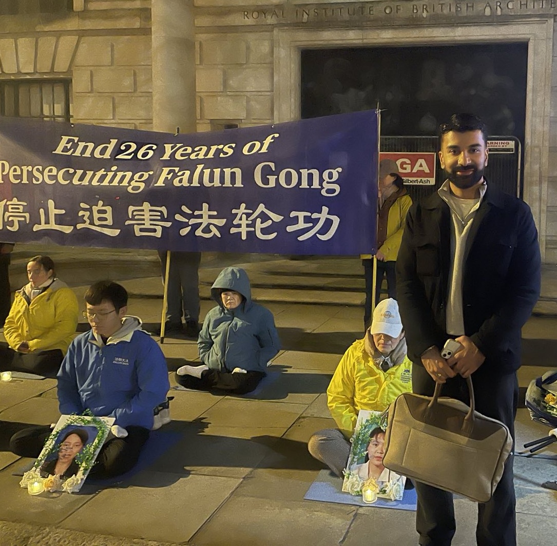 普雷姆(Prem)来自英国伯明翰,他途经此处时,看到法轮功学员的活动非常感动。
