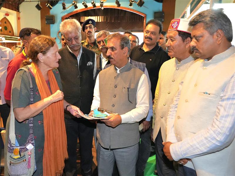 当学员在市政厅参加展览时,碰巧遇到也正在参观的喜马偕尔邦首席部长苏库文德·辛格·苏库。