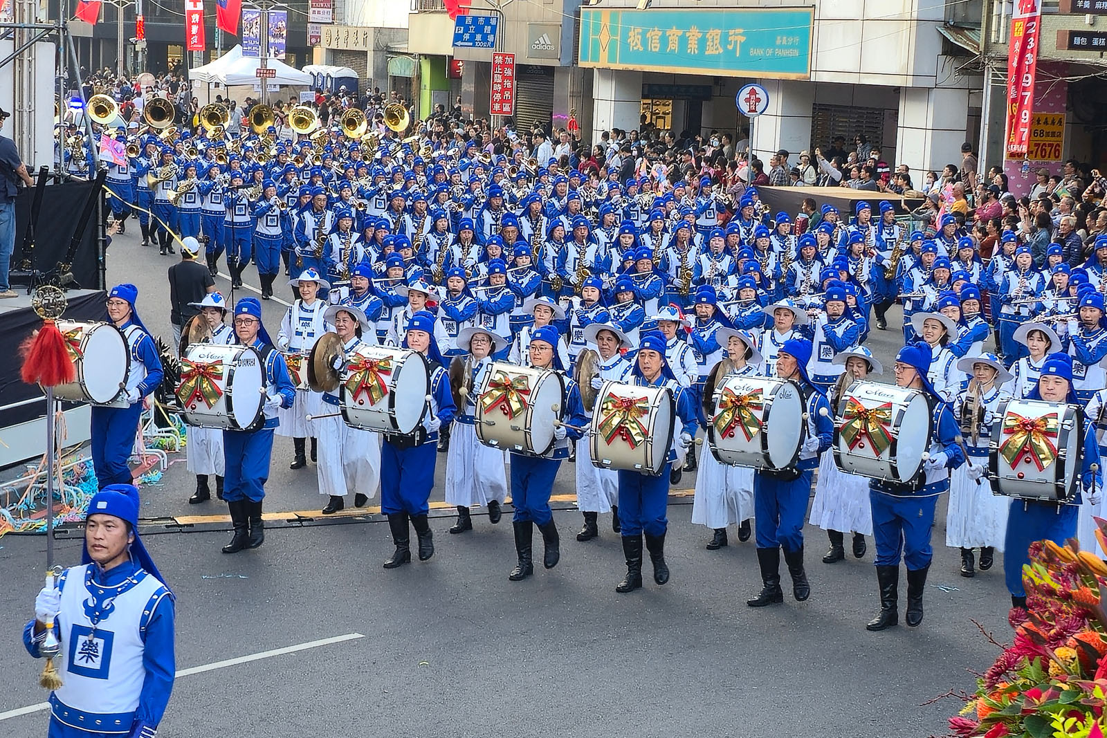 图1~5:于二零二五年十二月十六日,台湾法轮大法天国乐团受邀参加今年的台湾嘉义市“国际管乐节”嘉年华踩街,受到沿途观众的欢迎。