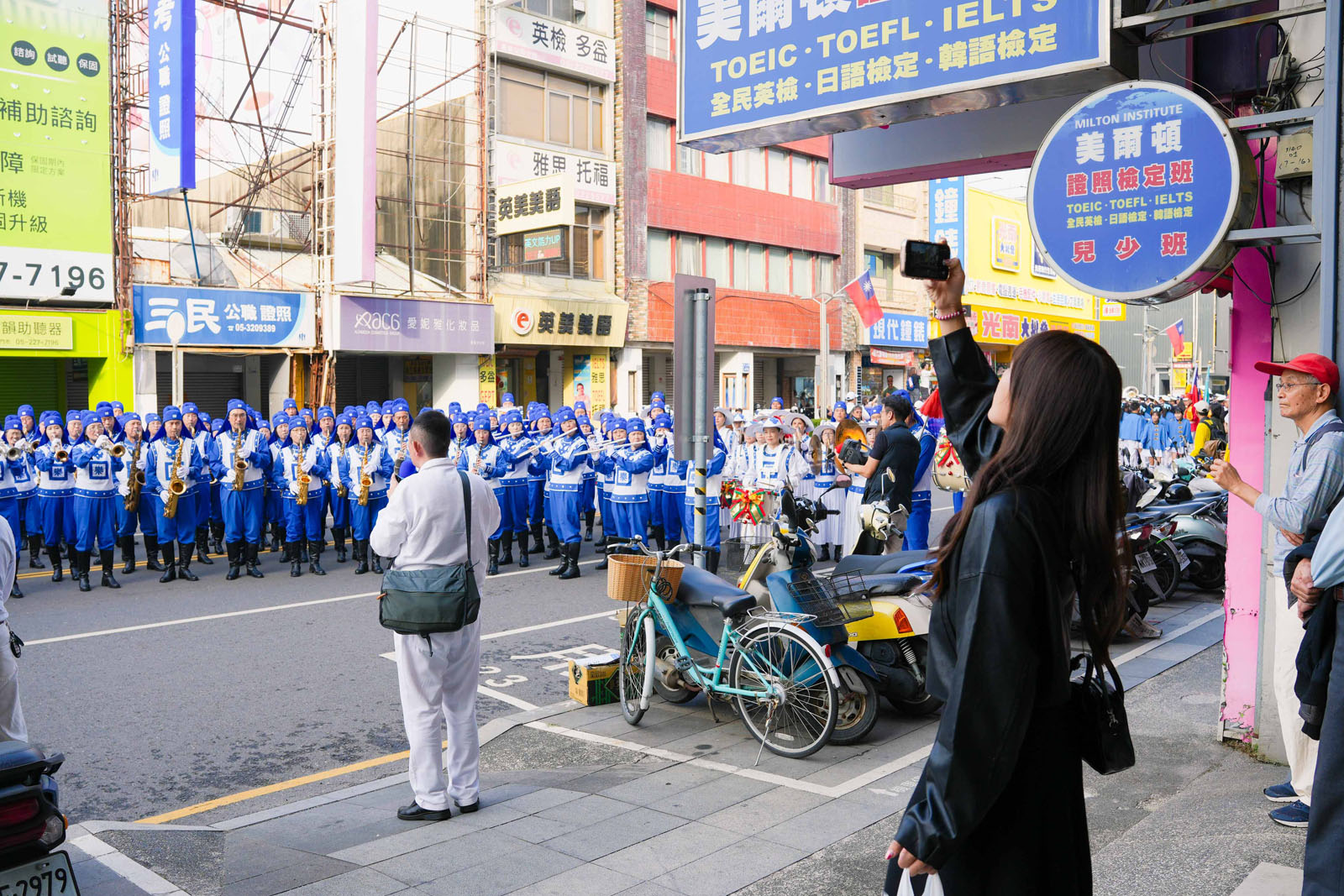 【明慧网二零二五年十二月二十一日】(明慧台湾记者站嘉义采访报道)二零二五年十二月二十日周六,由法轮功成员组成的法轮大法天国乐团在第三十三届“嘉义市国际管乐节”踩街活动中盛大登场,天国乐团已连续十余年参与管乐节,今年集结全台200多名团员,再次以震撼人心的乐音,成为街道上最受瞩目的焦点。
