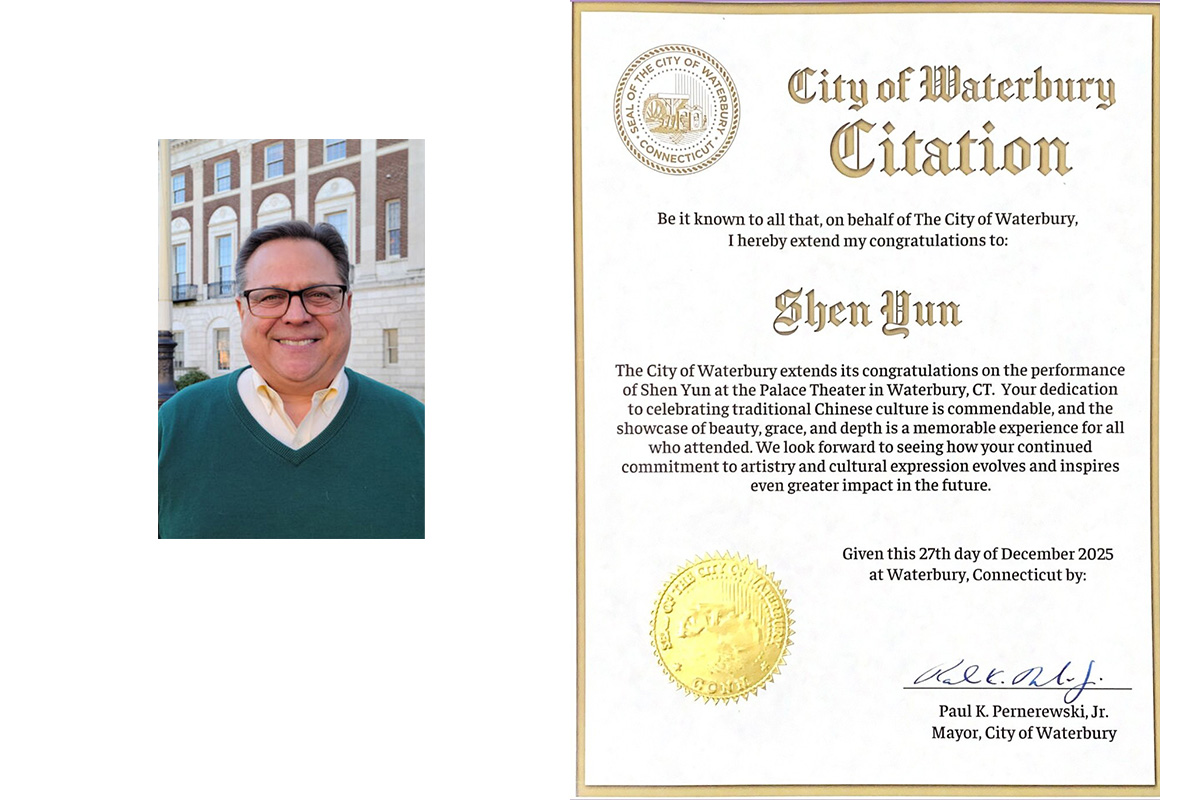沃特伯里市市长保罗·K·佩尔内雷夫斯基在嘉奖令中表示,沃特伯里市向神韵艺术团在派雷斯剧院的演出致以诚挚祝贺,并高度评价神韵艺术家在弘扬中国传统文化方面所付出的不懈努力。