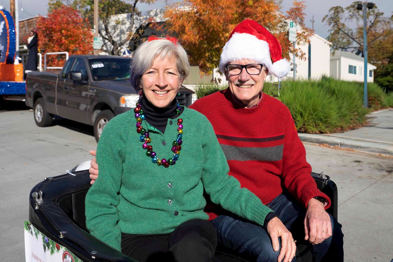 洛斯加托斯市议员玛丽亚·里斯托(Maria Ristow)和先生参加了游行。里斯托很高兴了解到法轮功学员的队伍参加游行,她说,“感谢你们参加洛斯加托斯圣诞游行。我们欢迎所有湾区的团体参加游行,尤其是表演舞蹈和演奏乐曲的队伍更受欢迎。我们非常感谢你们的队伍参加游行。”