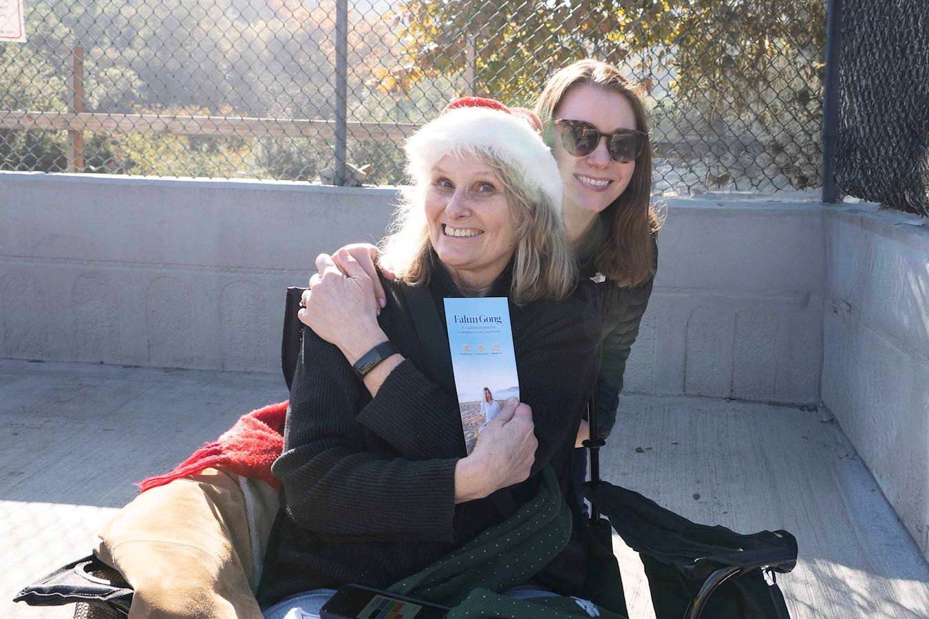 ![]() 图9:艾琳和女儿看到法轮功学员的队伍,露出喜气洋洋的笑容。 |