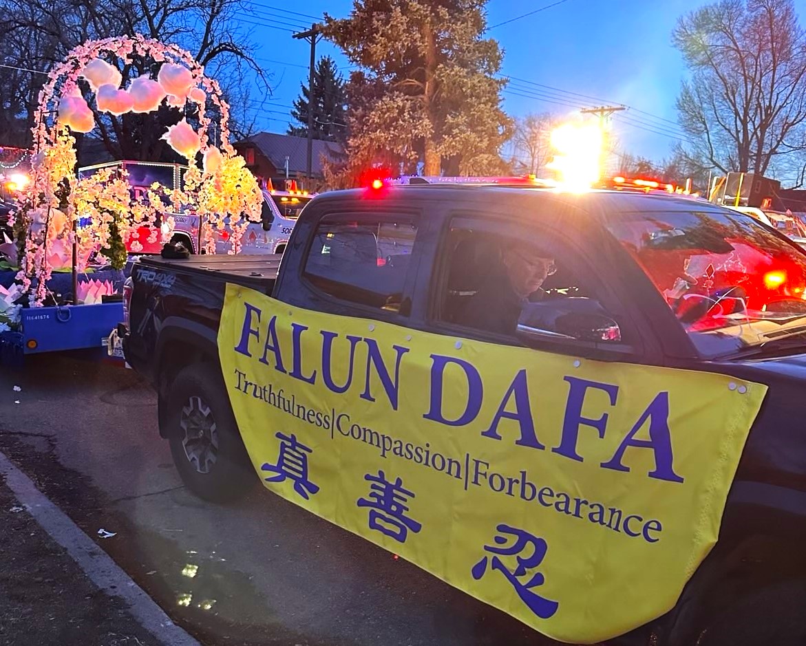 今年是雪镇节的第46个年头。杜兰戈的雪镇灯光大游行是每年的重要活动,通常吸引约万名观众。雪镇节的初衷是为在南落基山脉的这个古朴小镇的寒冷冬季提振人们的精神。与这一使命相契合,今年法轮功学员设计的花车主题为“天上梅花”。梅花是一种能忍受严寒的美丽花卉,象征着春天的到来,也象征着法轮大法从东方传向西方,将希望的讯息带给人们。当花车庄严地穿过人群时,随着法轮大法炼功音乐的美妙旋律,学员们展示着法轮功优美祥和的动作。