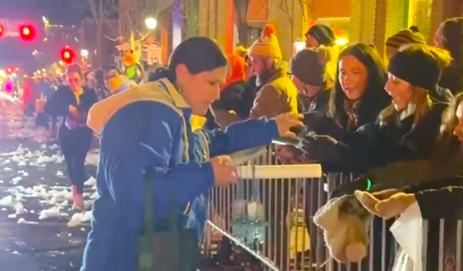 【明慧网二零二五年二月十四日】二零二五年一月三十一日,法轮功学员参加了位于美国西南部的科罗拉多州杜兰戈市年度雪镇灯光大游行,这是第三年他们连续参加该活动。在为期十天的当地庆祝活动中,法轮功学员展示了一辆装饰着灯光和花卉的功法演示花车,以及写着“真、善、忍”的大型横幅。许多观众表示钦佩,并告诉学员:法轮大法的花车总是最美的,期待每年都能看到。
