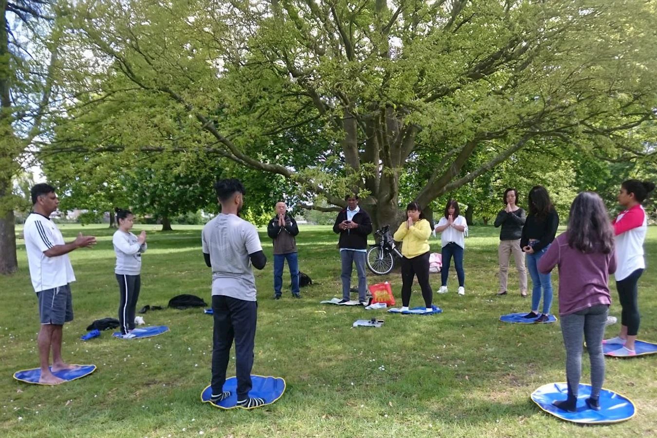![]() 图3:每周末丽丽他们在家附近公园里教功,并分享法轮大法的神奇功效。 |