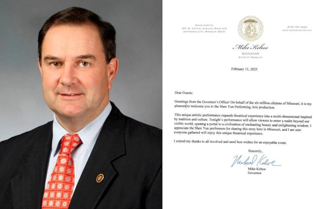 ![]() 图1:美国密苏里州州长迈克·基霍(Mike Kehoe)发来贺信。(明慧网合成) |