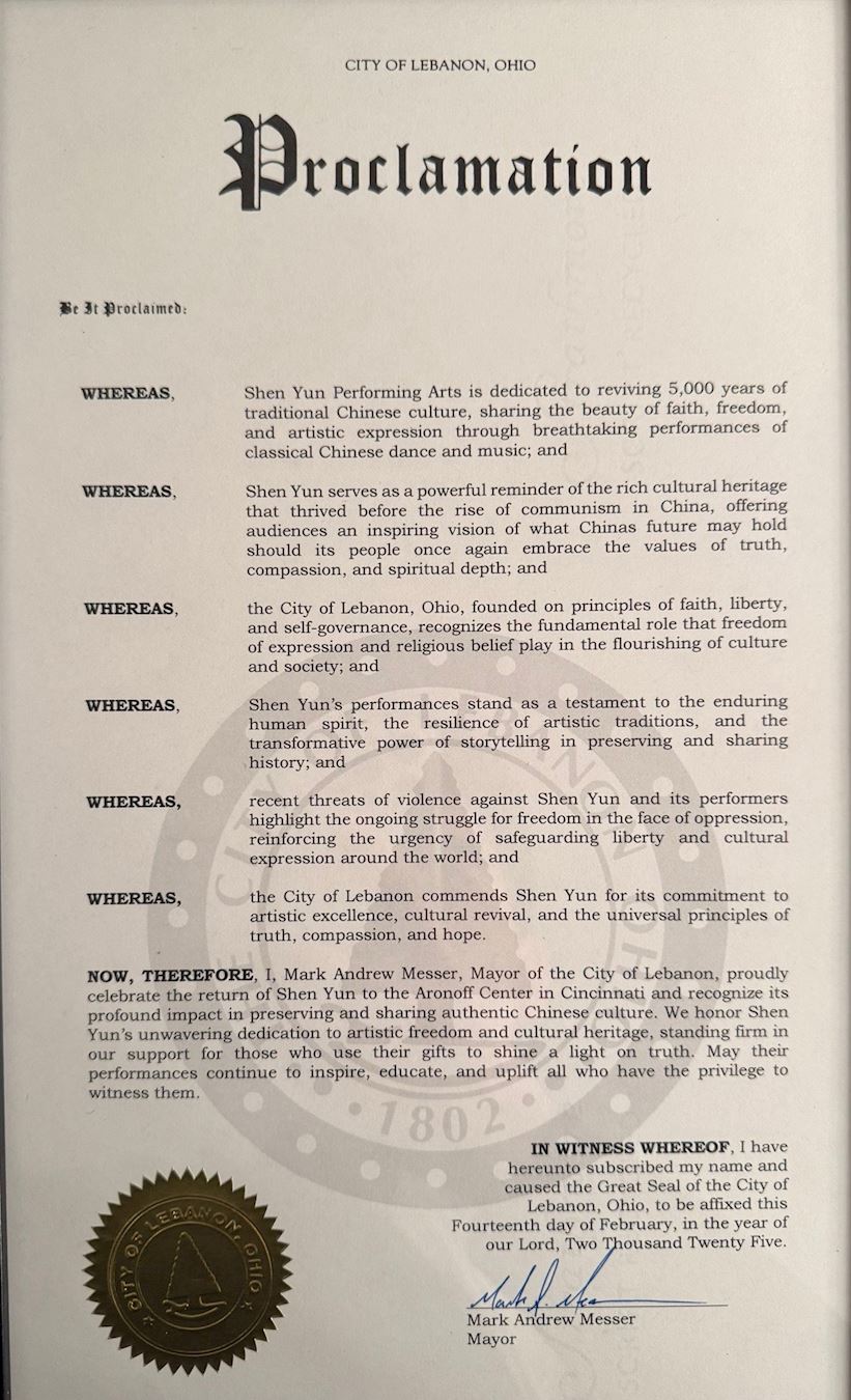 【明慧网二零二五年二月二十日】(明慧记者章韵综合报道)二零二五年二月十日至十六日,神韵八个同等规模的艺术团在欧美澳十一城市同步上演了三十四场演出,继续收到来自当地各级政要的贺信和褒奖,其中,美国密苏里州斯普林菲尔德市长宣布演出当天为“神韵艺术团日”。