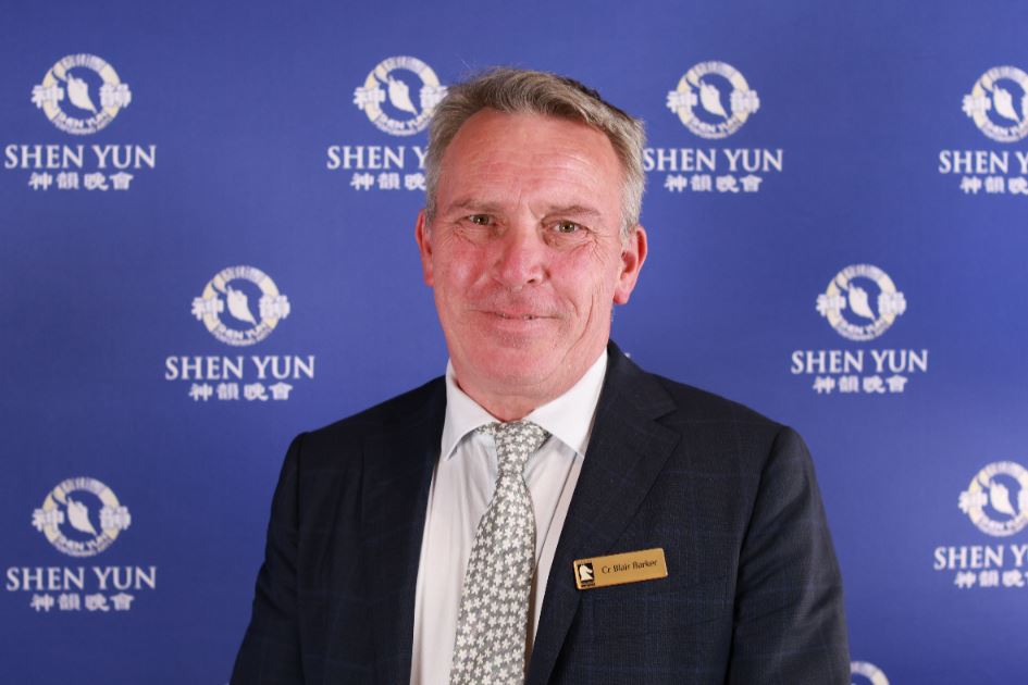 ![]() 图9:二零二五年二月十五日晚,澳大利亚维州白马市议员布莱尔·巴克(Blair Barker)欣赏了美国神韵环球艺术团在澳洲墨尔本的演出。(新唐人电视台) |