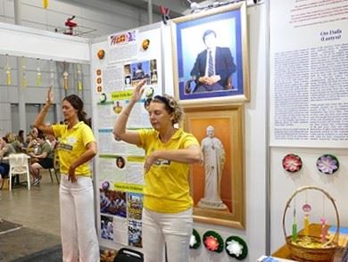 ![]() 图1~2:法轮功学员在身心灵节上讲述法轮大法的美好并揭露中共对法轮功的迫害 |
