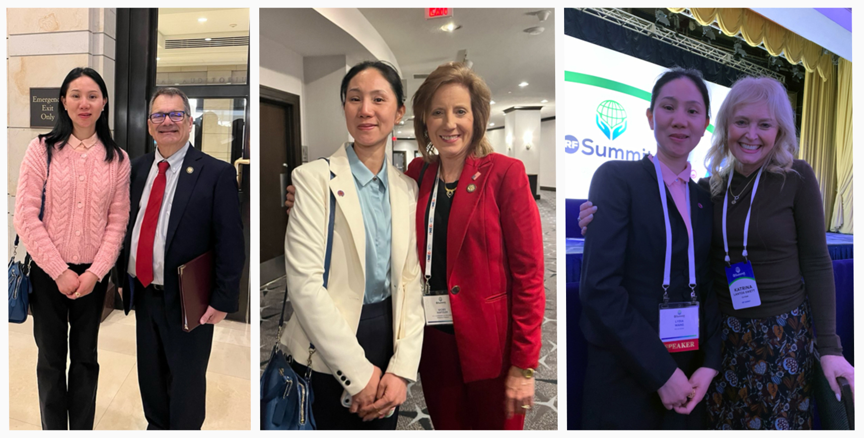 ![]() 图2:多位峰会与会者与王珊珊(Lydia Wang)合影以示支持。从左至右:国会议员(戈斯‧比利拉基斯)Gus Bilirakis;前国会议员、现任美国国际宗教自由委员会(USCIRF)委员薇琪·哈茲勒(Vicky Hartzler);以及国际宗教自由峰会联合主席卡特里娜·斯維特(Katrina Lantos-Swett)。 |