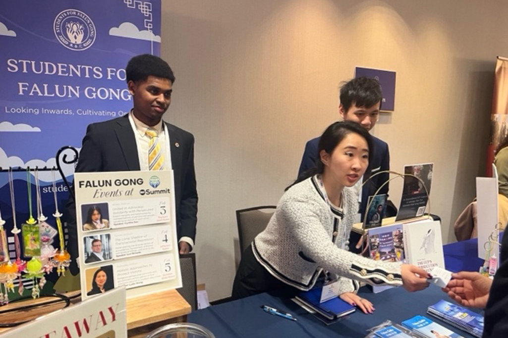 许多年轻的法轮功学员也参与了此次峰会,呼吁关注中国的迫害问题。这些学生和年轻专业人士分别来自弗吉尼亚州、纽约州、宾夕法尼亚州以及加拿大蒙特利尔。峰会期间,他们参加了不同的专题会议,并在法轮功展位上接待访客,向与会者介绍法轮功及在人权方面所面临的危机。