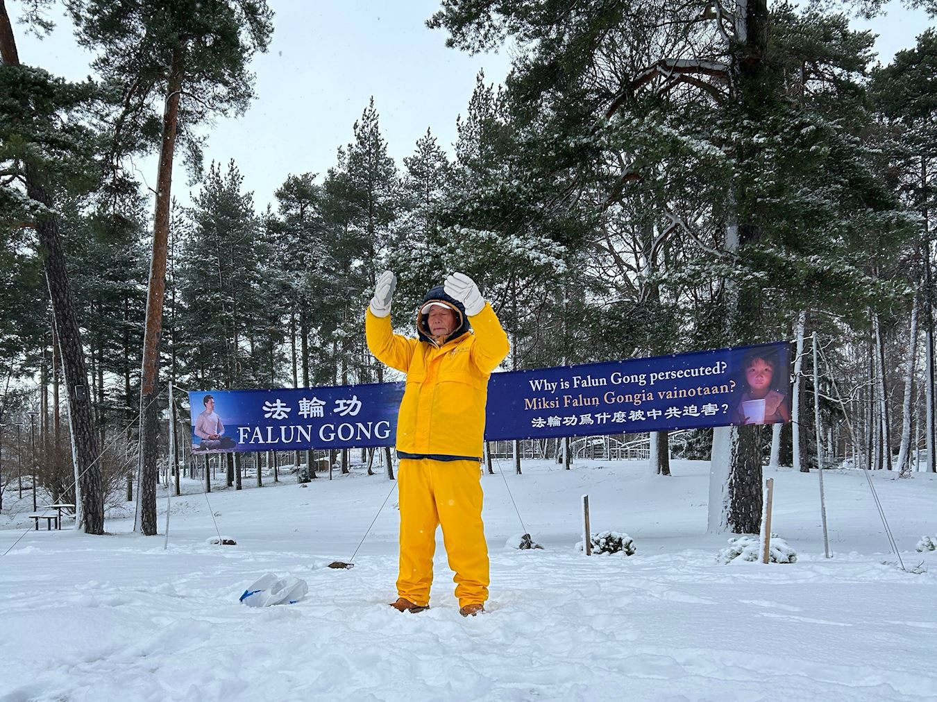 芬兰法轮大法协会的伊尔马里·内瓦斯马(Ilmari Nevasmaa)表示,法轮功志愿者几乎每天都会在最近翻新的西贝柳斯公园举行抗议活动,并进行集体炼功。
