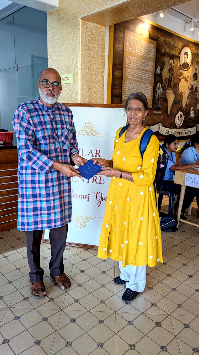 研讨会结束时,学员向给两位大会组织者赠送了《转法轮》和《法轮功》这两本法轮大法的主要著作。贾尼特·费尔南德斯(Dr. Janet Fernandes)博士是圣泽维尔学院(St. Xavier’s College)的一位心理学教授;弗雷德里克·罗德里格斯(Dr. Father Frederick Rodrigues)博士是阿格内尔学院(Father Agnel College)的一位副教授和神父。