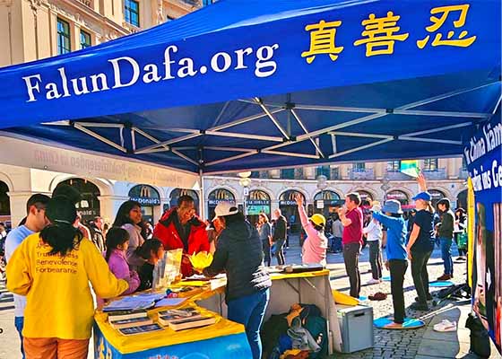 三月二十二日,德国法轮功学员在慕尼黑卡尔斯广场,向过往民众展示法轮功的美好,揭露中共对法轮功学员持续至今26年的迫害及活摘法轮功学员器官的罪恶。