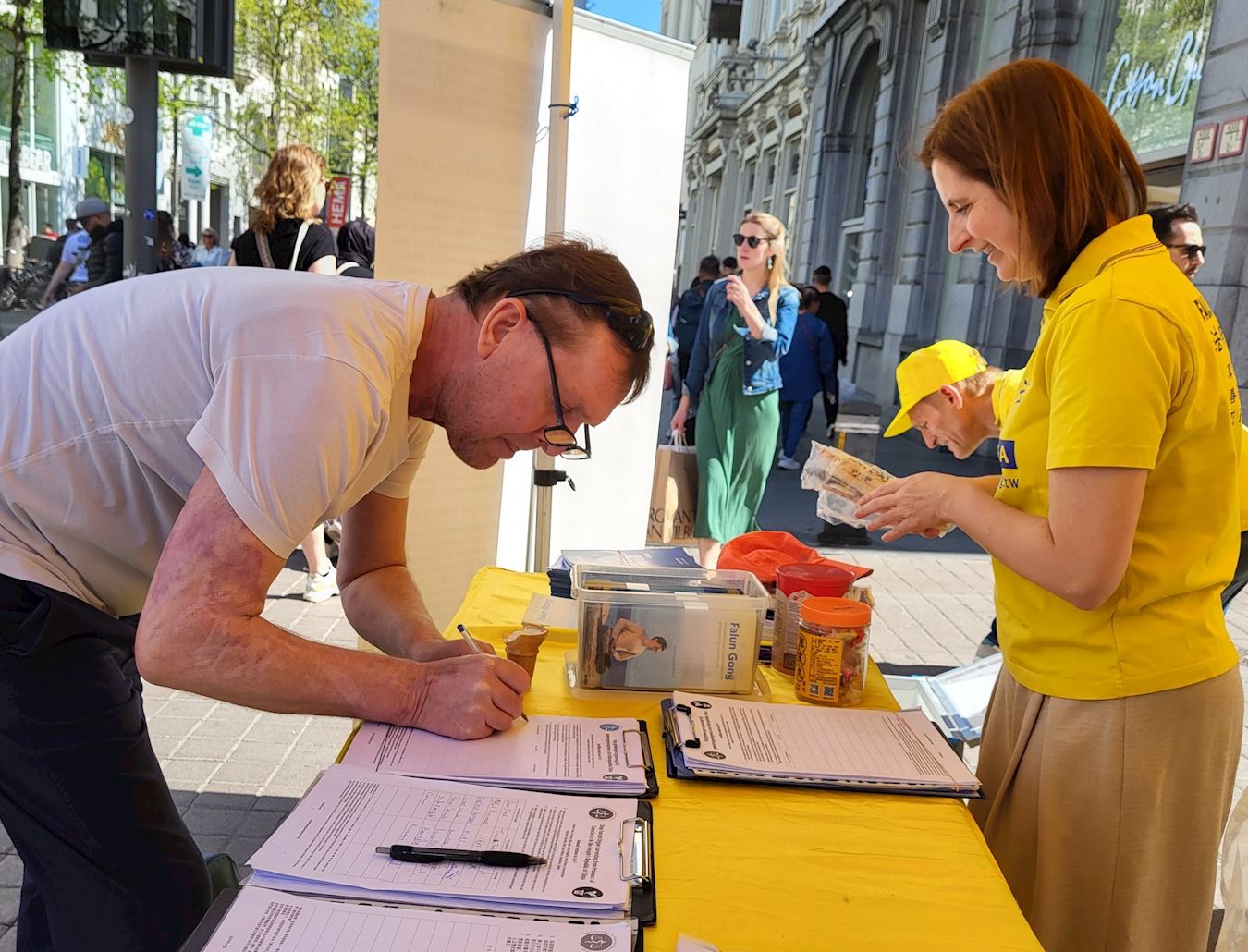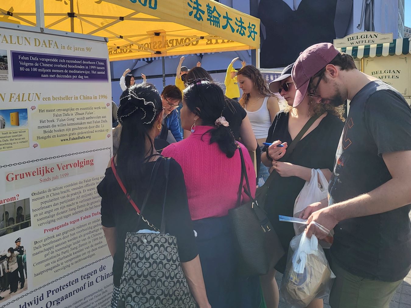 来往的比利时民众和各国游客都对中共残酷迫害法轮功的恶行表达强烈不满,并赞赏法轮功修炼者展现出的平和与坚韧。他们表示真善忍的原则令人敬佩,希望人人都能享有信仰与修炼的自由。许多人要求留下学炼法轮功炼功点的信息。