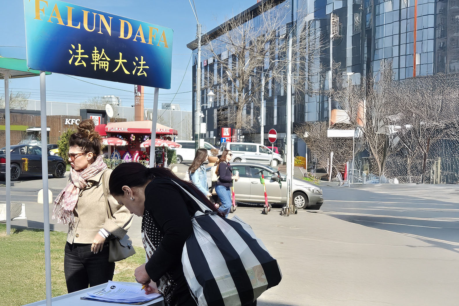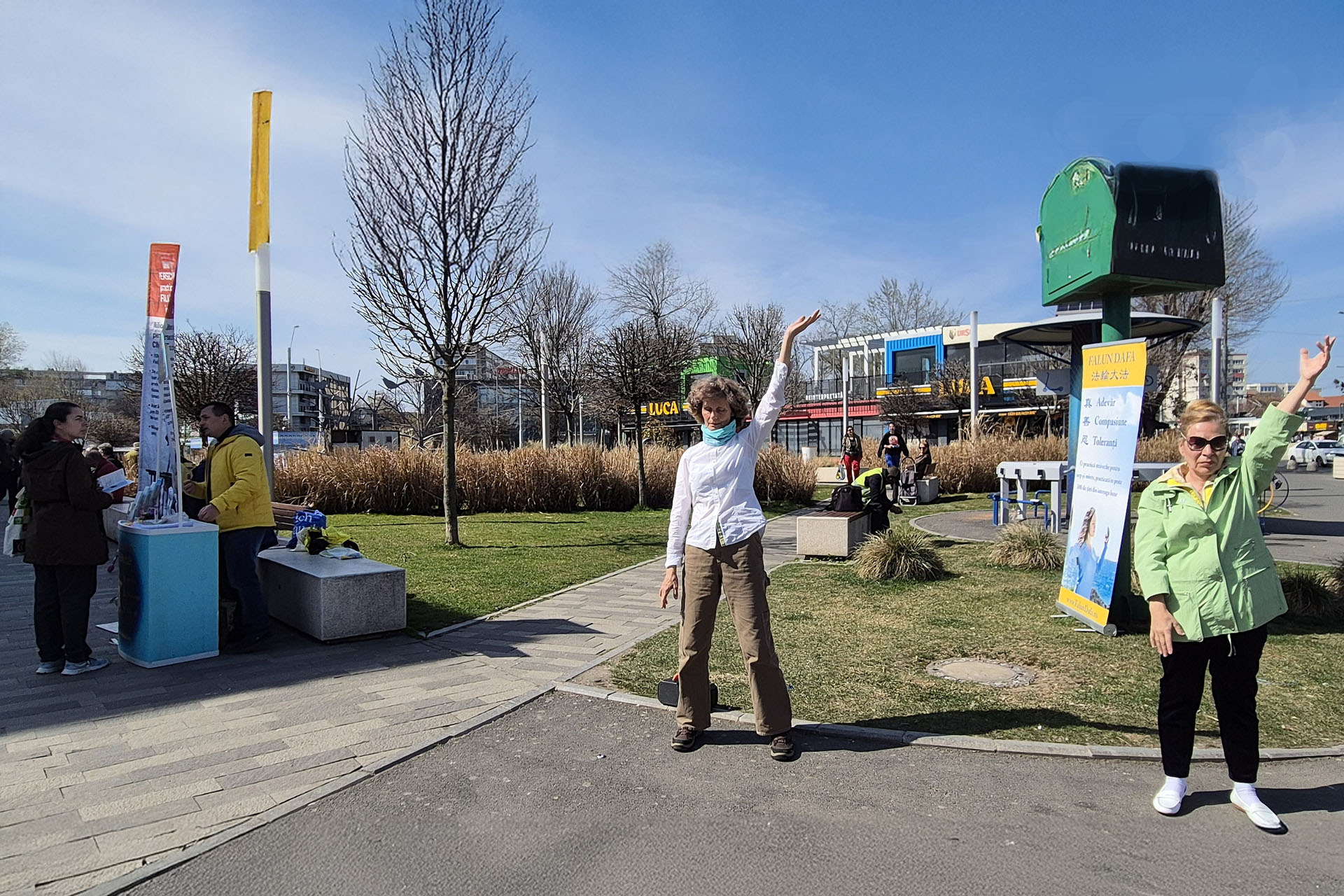 ![]() 图1~2:二零二五年三月二十二日,法轮功学员在布加勒斯特展示五套功法,并在制止迫害的请愿书上征集签名。 |