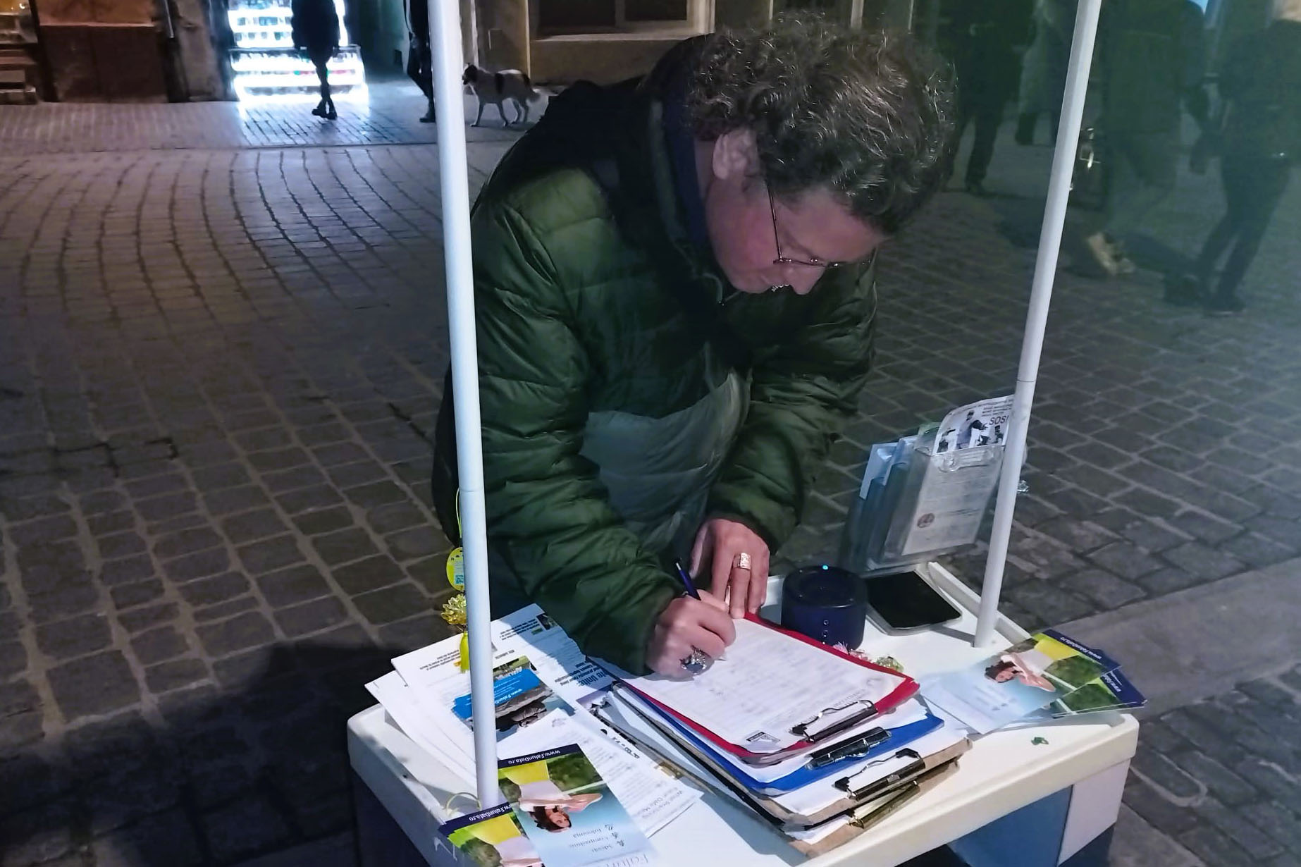 ![]() 图14:二零二五年三月二十二日,在布拉索夫,弗洛林·马蒂亚斯在请愿书上签名。 |