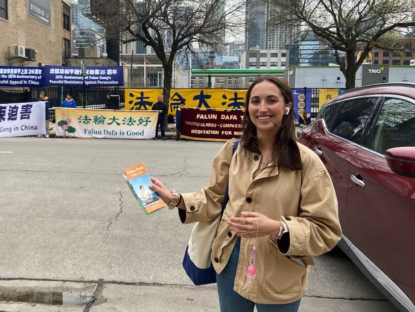 她还想对法轮功学员们说:“你们大家是我的英雄,我非常感谢你们,因为你们展示了一切,你们让我们感到羞愧。你们太棒了,超越了自我!我们有自由表达自己的声音和选择自己的宗教信仰的权利,你们没有隐藏,这件事情深深地打动了我,所以我为你们鼓掌,我非常感激你们!”