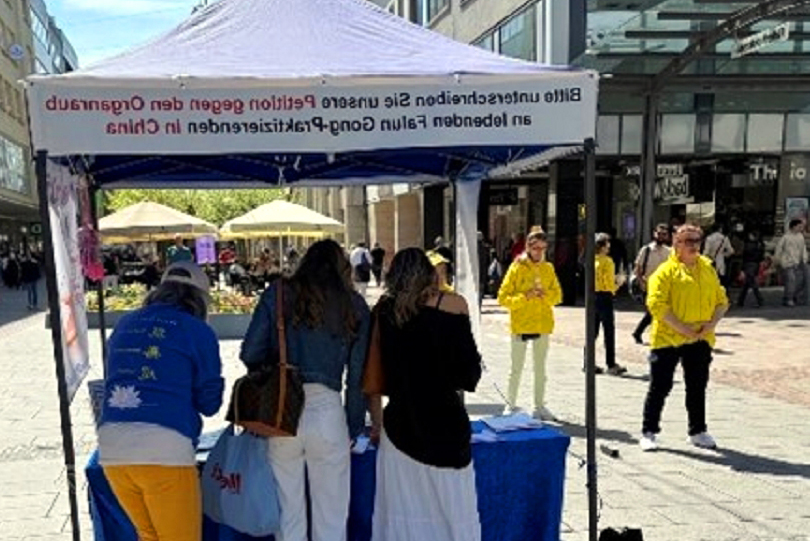【明慧网二零二五年四月二十六日】二零二五年四月十九日,复活节,星期六,萨尔布吕肯市部分德国法轮功学员举办了信息发布会,谴责中共活摘法轮功学员器官。许多人对此深切关注,并签署向德国联邦政府人权委员会提交反活摘器官的请愿书。