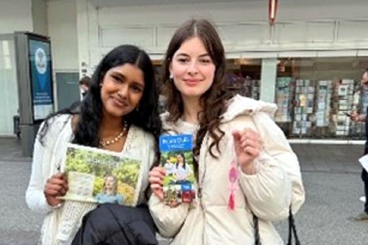 两位年轻女士认真倾听学员介绍大法的法理和中国法轮功学员受到中共迫害的真相,离开时她们向学员拿取了真相资料。一位年轻男子也深入了解了大法,并强调他支持对所有人都一视同仁,无论他们的信仰如何。他们三人都高兴地在请愿书上签了名。