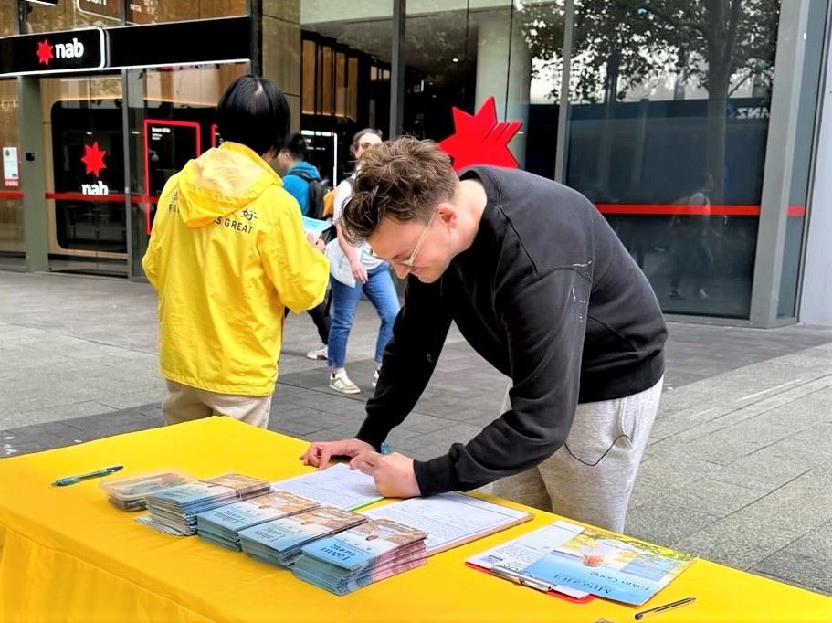 奥斯丁本地人马修(Matthew)在议会大厦附近骑单车,看到有活动,过来与法轮功学员交谈。他因家里人曾有人到过中国传教,所以他知道中共不容忍那些信仰,或传授与其共产主义意识形态不同的人,甚至它还篡改圣经。马修说他对打坐非常感兴趣,法轮功让他非常有共鸣。在他发现奥斯丁的炼功点离他家很近时,很高兴,他想学习法轮功。