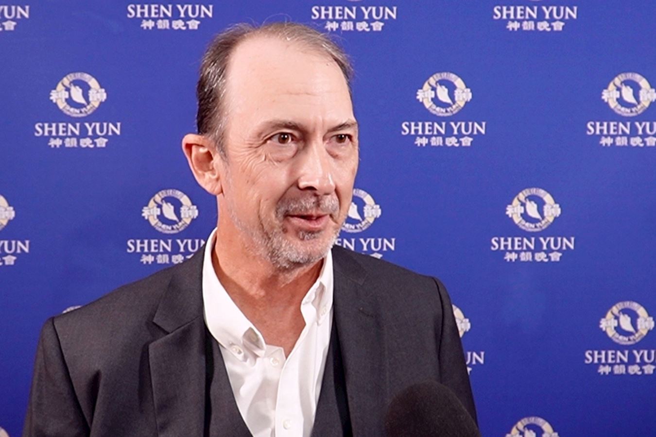 克劳斯从演出中了解了关于法轮大法的精神理念,“其实很多内容与我自己的信仰相似,这很有意思。”他说,“无论你是谁,无论是启迪(enlightenment)还是天堂,本质上都是在谈论天上的家。我的信仰中也使用这些词,因此,对我来说,这种感觉非常熟悉。我觉得这真的很了不起,我很惊喜(演出)包含了不同的层面。”他表示,未来将进一步了解法轮大法。