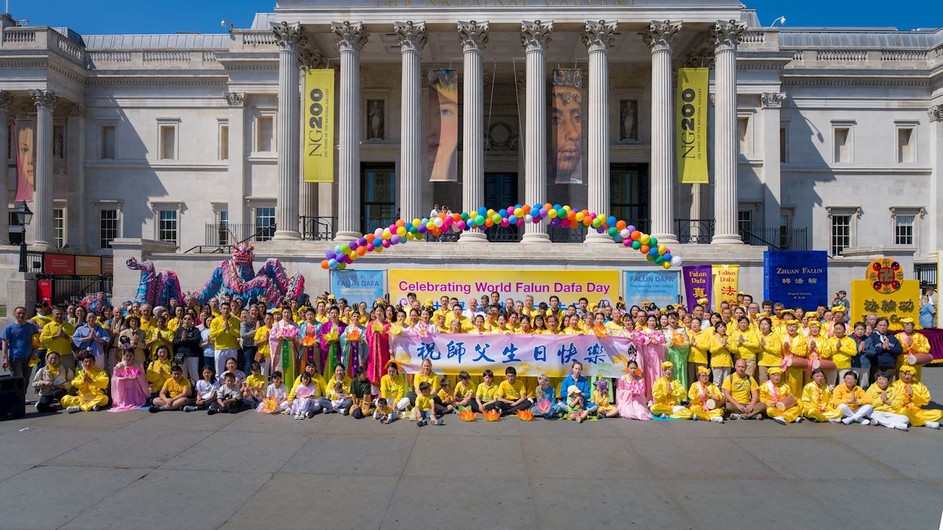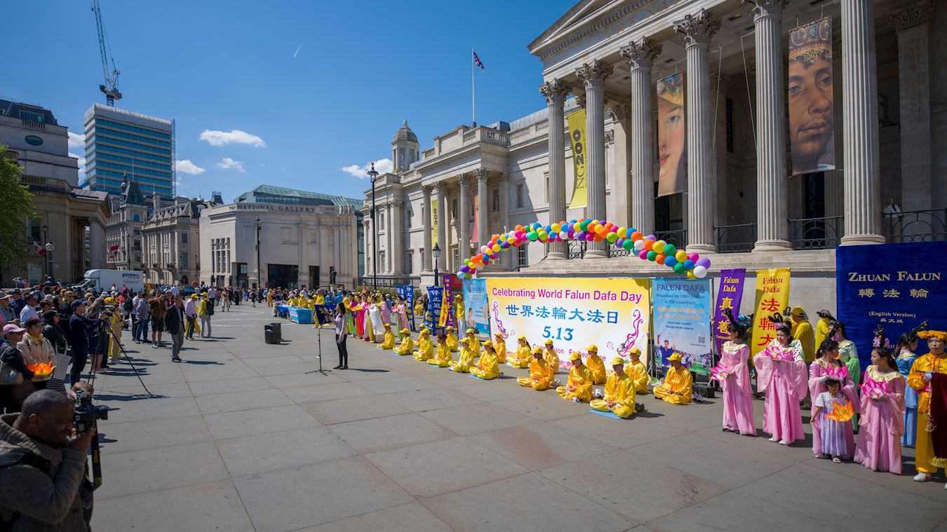 游行最终抵达特拉法加广场北台,法轮功学员随即举行新闻发布会、弘法与庆祝活动。