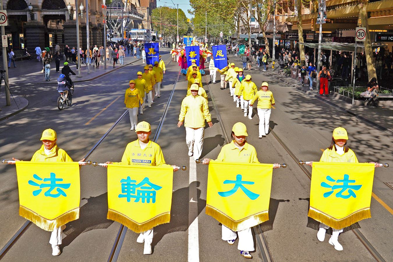 图1~12:二零二五年五月十日,澳洲墨尔本部分法轮功学员在市中心举行盛大游行,欢庆“5.13世界法轮大法日”暨法轮大法弘传世界三十三周年。
