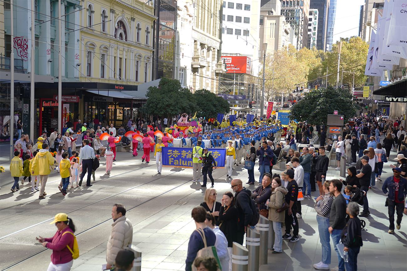 【明慧网二零二五年五月十三日】(明慧网墨尔本记者站报道)二零二五年五月十日,澳洲最大城市墨尔本的部分法轮大法学员在市中心举行了隆重的游行和集会,庆祝“5.13世界法轮大法日”暨法轮大法弘传世界三十三周年,传递大法福音,颂赞真、善、忍普世价值,并恭祝法轮大法创始人李洪志先生华诞,表达弟子们的无限感恩和生日祝福。