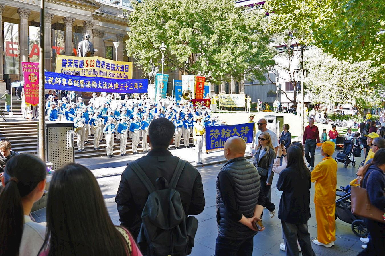 '图1~12:二零二五年五月十日,澳洲墨尔本部份法轮功学员在市中心举行盛大游行,欢庆“5.13世界法轮大法日”暨法轮大法弘传世界三十三周年。'