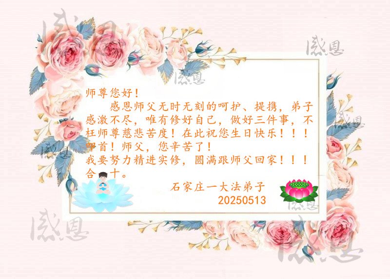 我由衷地感谢您在我成长过程中的保护和指导。我将继续加强正念,更好地助师正法。