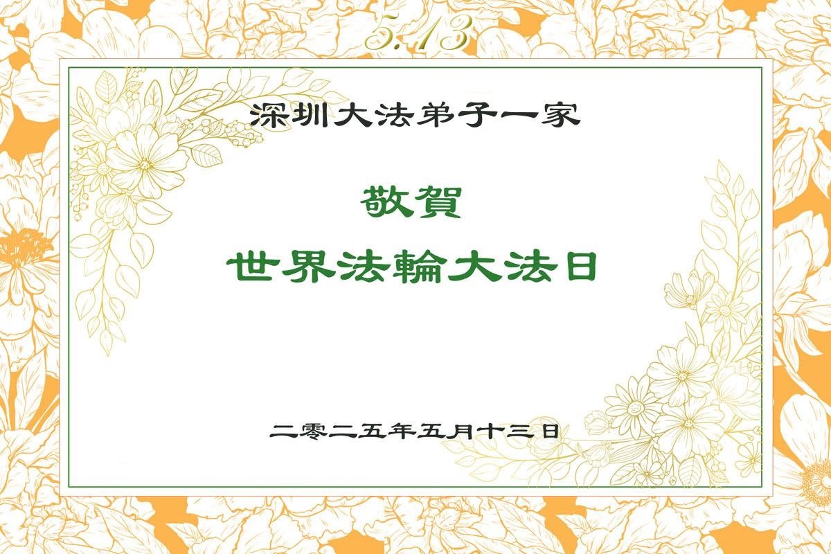 以下是来自韩国、日本、印度、马来西亚、新加坡、中国、菲律宾、印度尼西亚、越南、老挝、泰国、香港、澳门、台湾、阿联酋、伊朗、土耳其、波兰、俄罗斯、法国、英国、爱尔兰、德国、西班牙、意大利、希腊、比利时、荷兰、芬兰、丹麦、瑞典、奥地利、挪威、斯洛伐克、克罗地亚、塞尔维亚、黑山、澳洲、新西兰、美国、加拿大、厄瓜多尔、哥伦比亚、委内瑞拉、巴西、秘鲁、拉脱维亚、波斯尼亚和黑塞哥维那等国家和地区大法弟子致敬师尊的部份贺词贺卡。