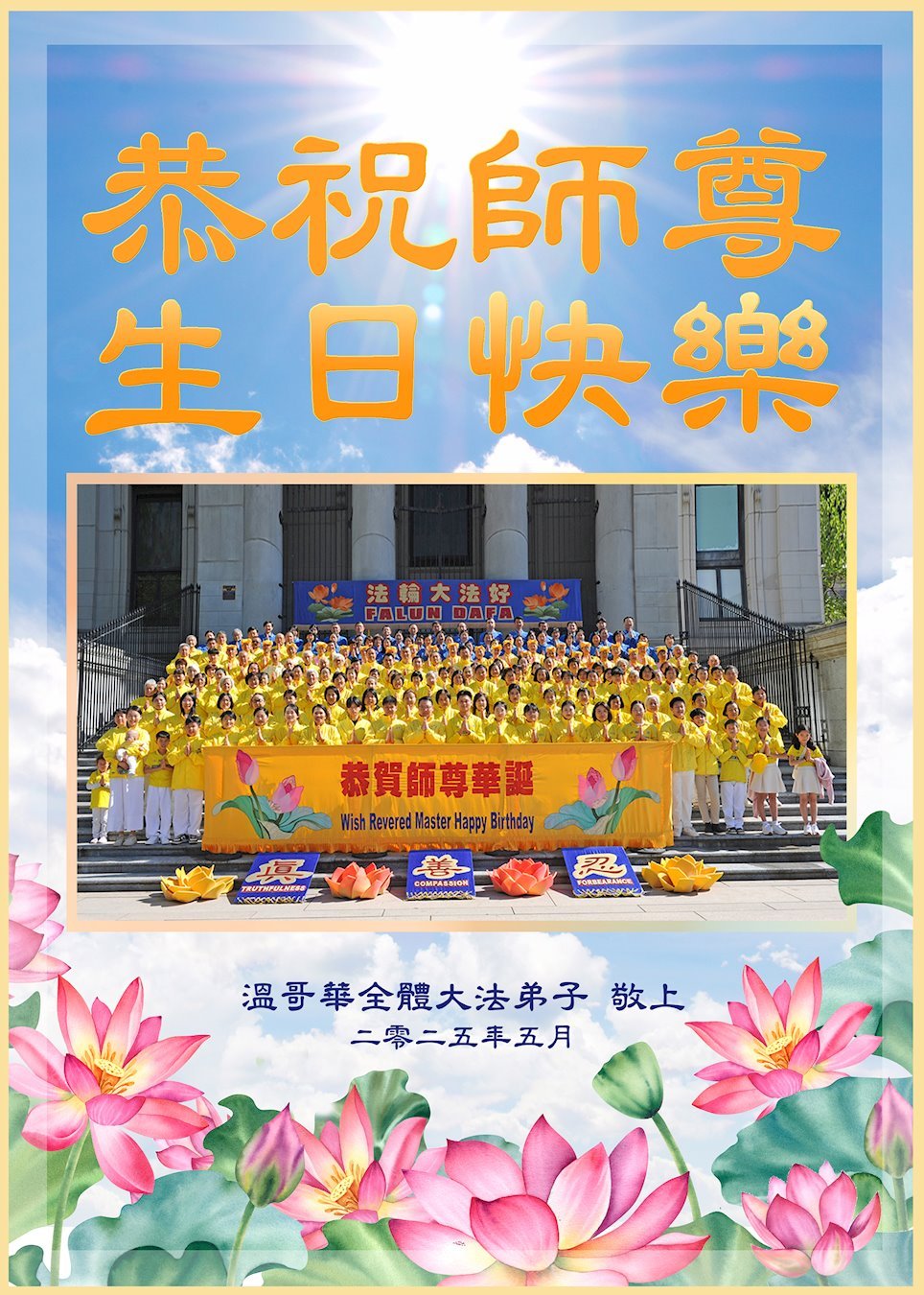 ![]() 图1:多伦多大法弟子恭祝师父生日快乐! |