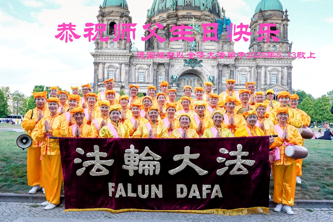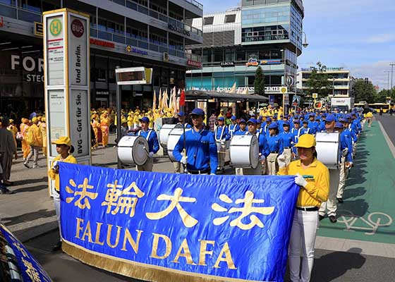 五月九日及十日,为庆祝五月十三日世界法轮大法日举办的活动,德国和欧洲多国的法轮功学员走上柏林街头,共同欢庆世界法轮大法日。