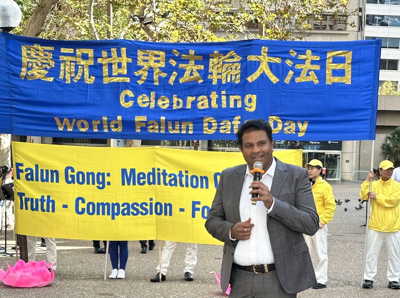 帕拉马塔市议员斯里尼·皮拉马里(Cr Sreeni Pillamarri of Parramatta City Council)表示:“我很荣幸能够参与法轮大法庆典活动。我与法轮大法结缘已近十五年,这段旅程意义非凡。”
