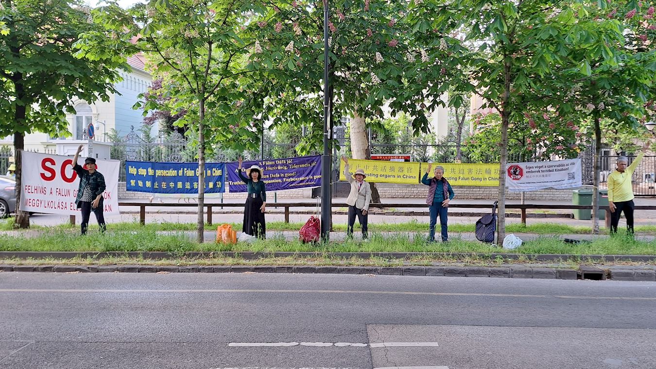 【明慧网二零二五年五月二日】二零二五年四月二十九日,匈牙利法轮功学员在中共驻布达佩斯(Budapest)领事馆前举行和平抗议活动,纪念四·二五和平理性上访二十六周年。