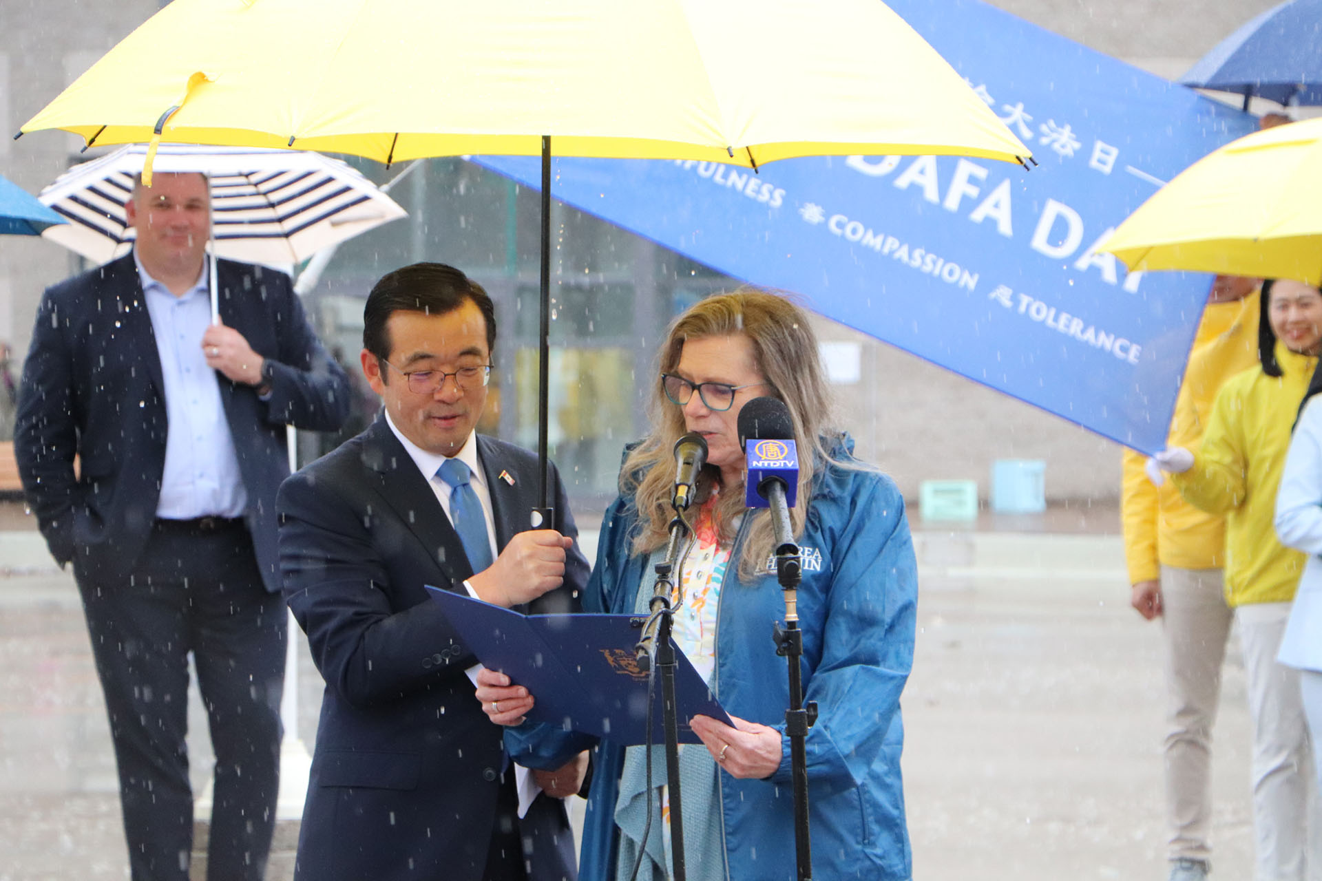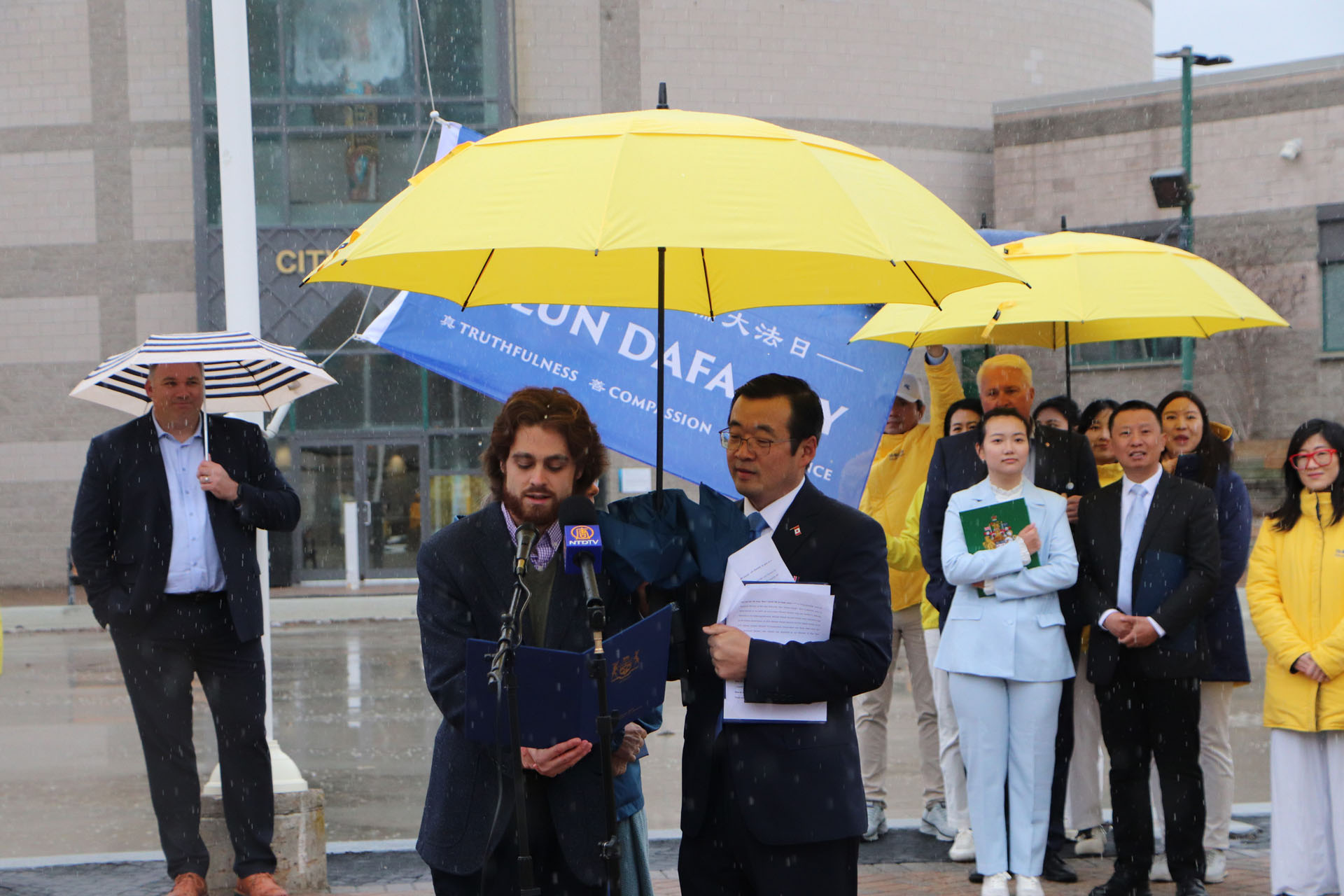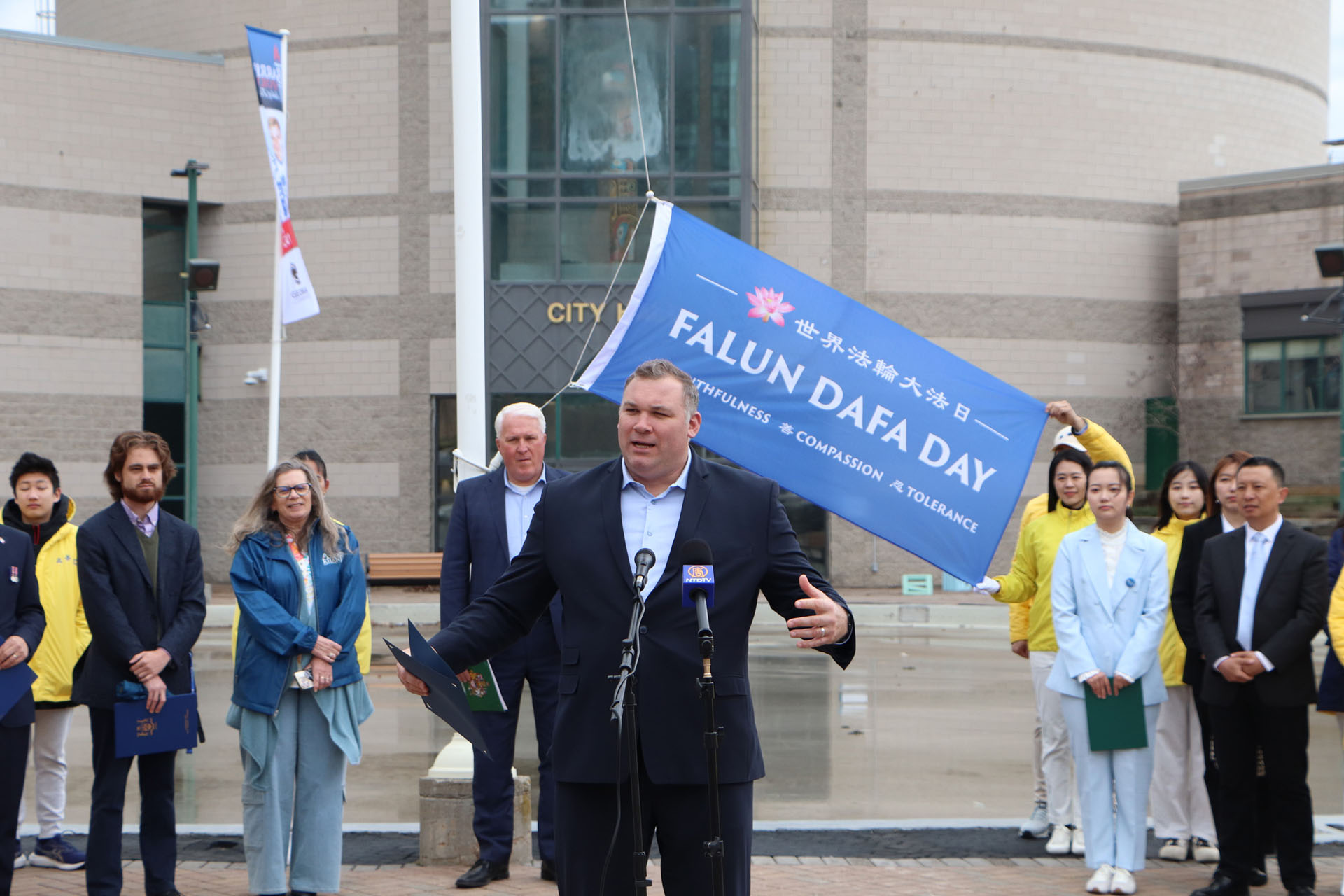 巴里市市长亚历克斯·纳托尔(Alex Nuttall)在市政厅前出席了升旗仪式。他发表感言:“今天,感谢你们来到巴里市政厅,我们聚集在一起,升起了这面旗帜,庆祝加拿大能够做到的一切,能够自由地践行你们的信仰,自由地生活,庆祝在中国大陆没有做到的一切。我们需要认识到,在巴里,你们有能力做你们想做的事,并且能够在这个公共广场上庆祝这一切。感谢你们今天加入我们,给予我们尊重。”