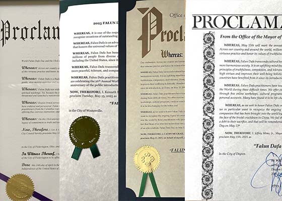 5月13日是第26届“世界法轮大法日”,也是法轮大法弘传33周年日,俄亥俄州四个城市市长颁发褒奖,宣布2025年5月13日为“法轮大法日”。