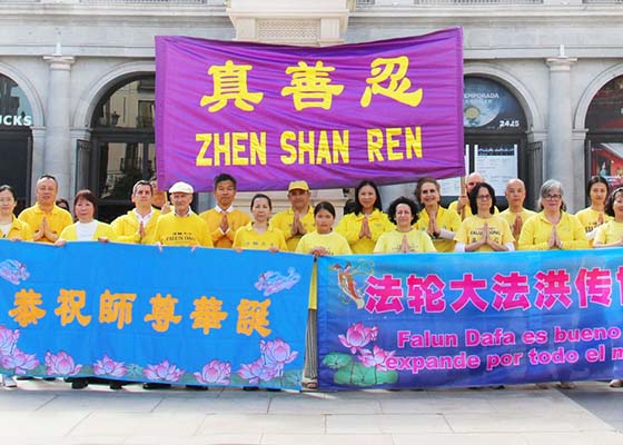 西班牙法轮功学员为庆贺世界法轮大法日暨师尊华诞,在马德里、巴塞罗那、大加那利岛等多城市举办弘法讲真相活动。